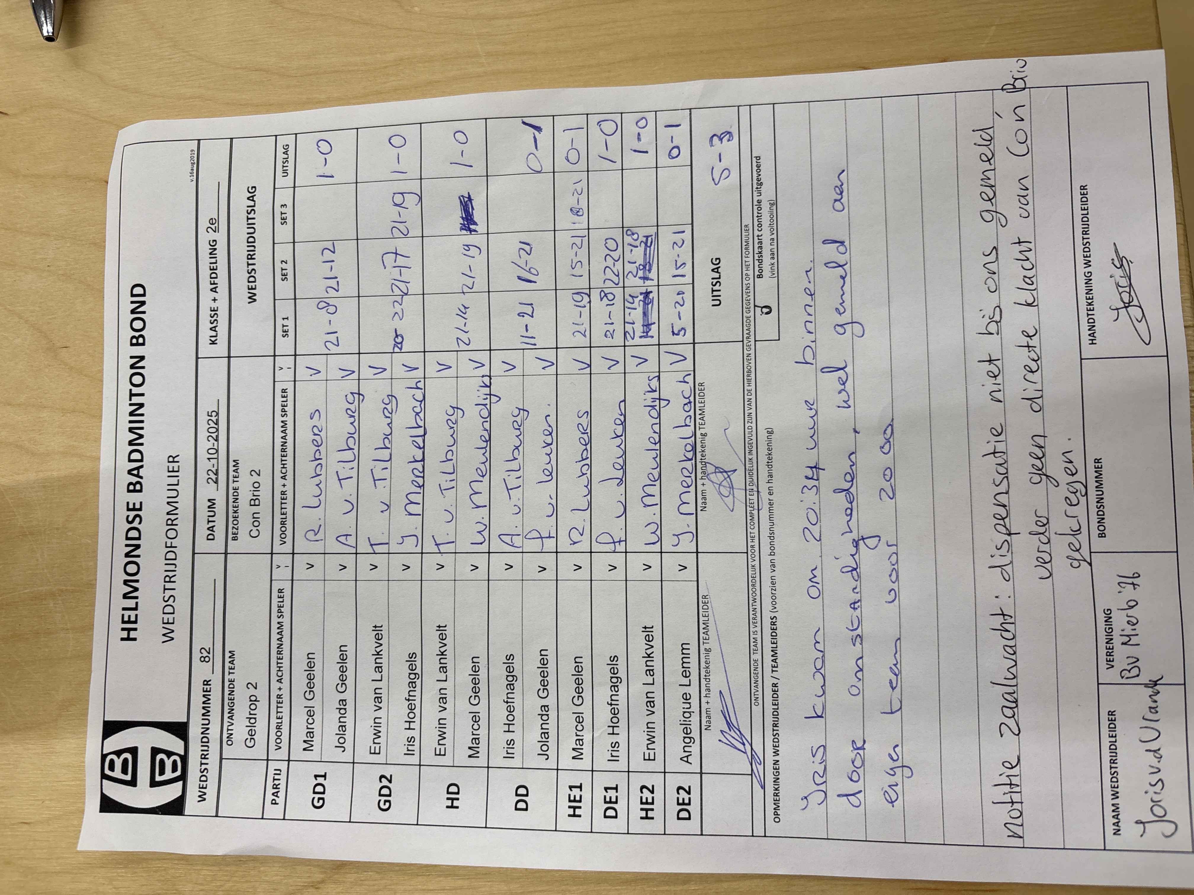 | 82 | wo 22-10-2025 | Geldrop 2 | - | Con Brio 2 | 4 | 5 - 3 | |||