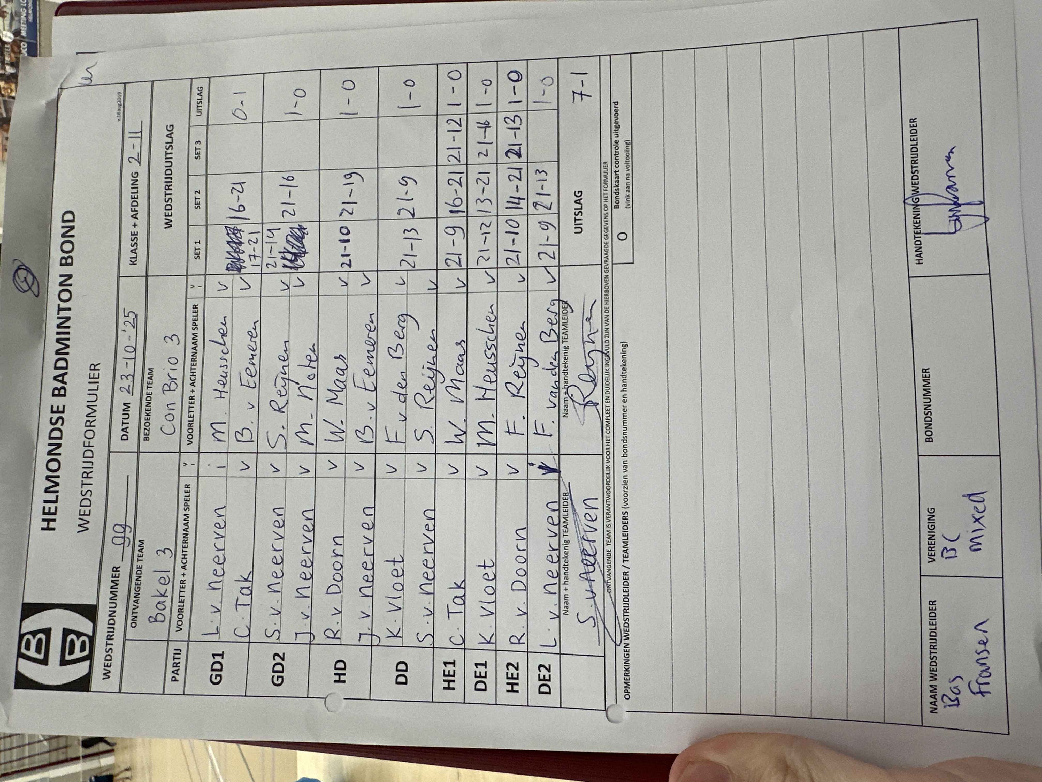 | 107 | wo 05-11-2025 | Con Brio 3 | - | VBSC 1 | 12 | 1 - 7 | |||