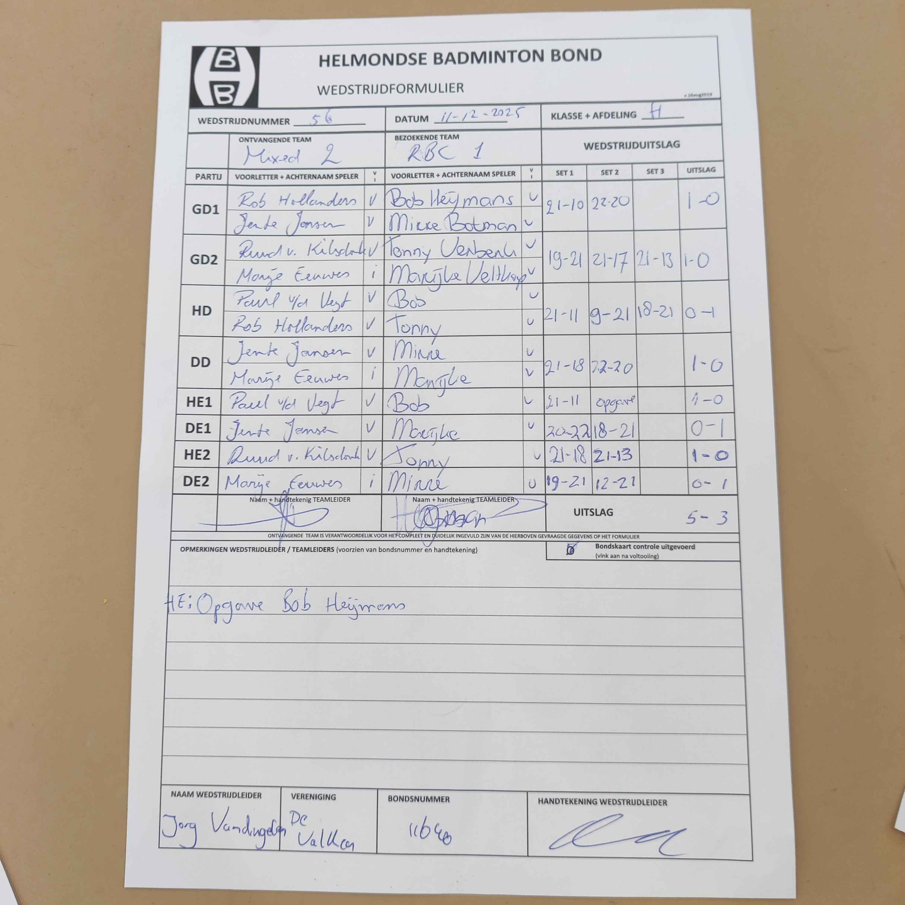| 52 | do 20-11-2025 | RBC 1 | - | Someren 1 | 11 | 3 - 5 | |||