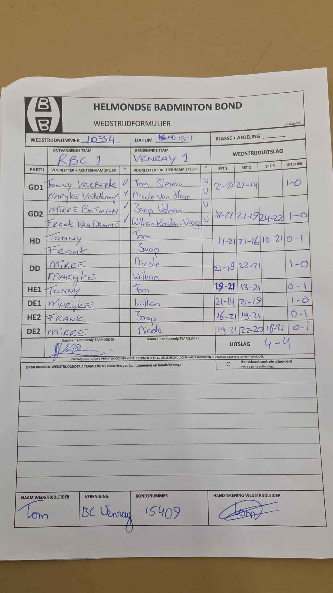 | 1034 | do 15-01-2026 | RBC 1 | - | Venray 1 | 15 | 4 - 4 | |||