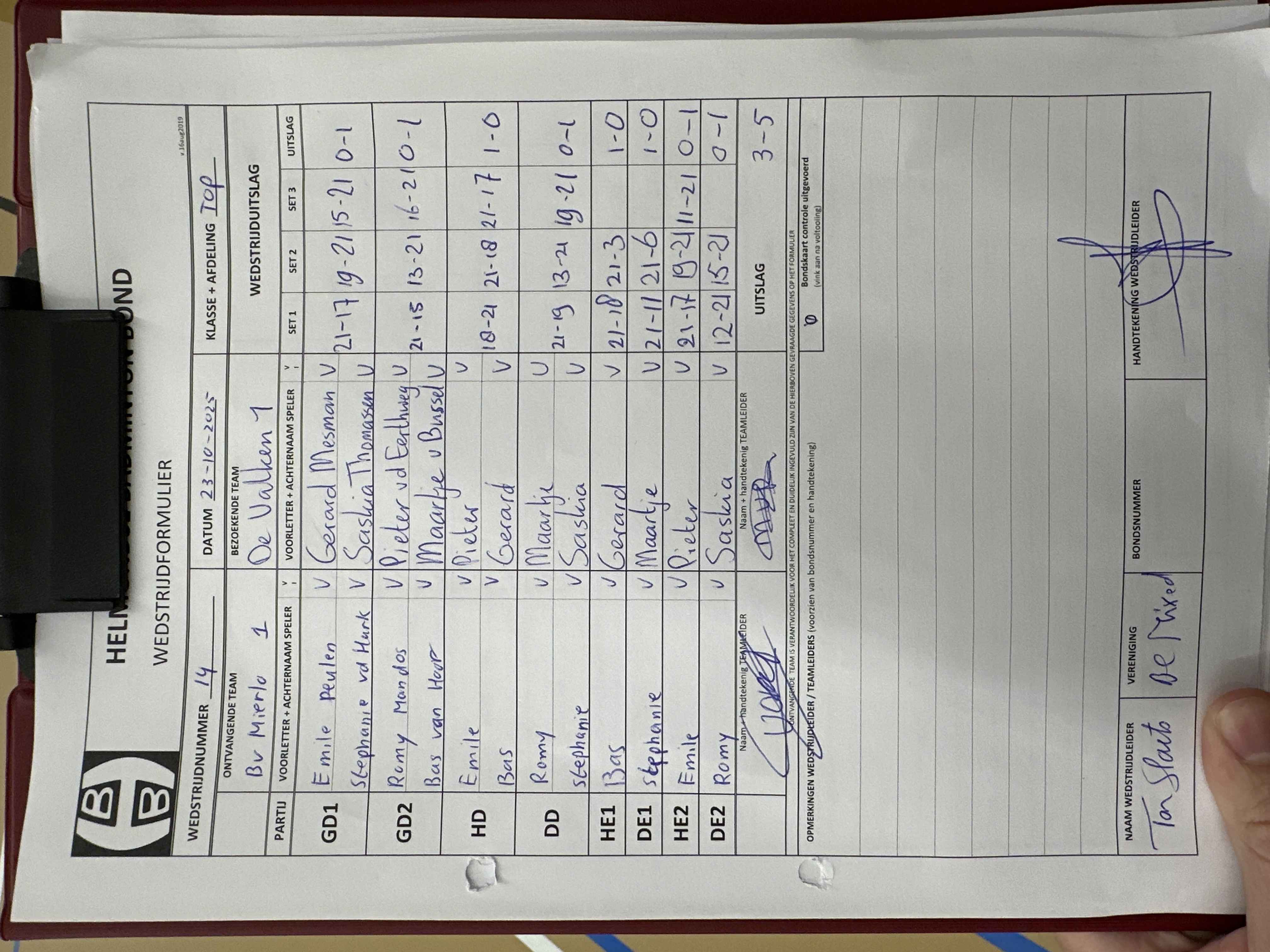 | 24 | do 20-11-2025 | Mierlo 1 | - | Mixed 1 | 2 | 4 - 4 | |||