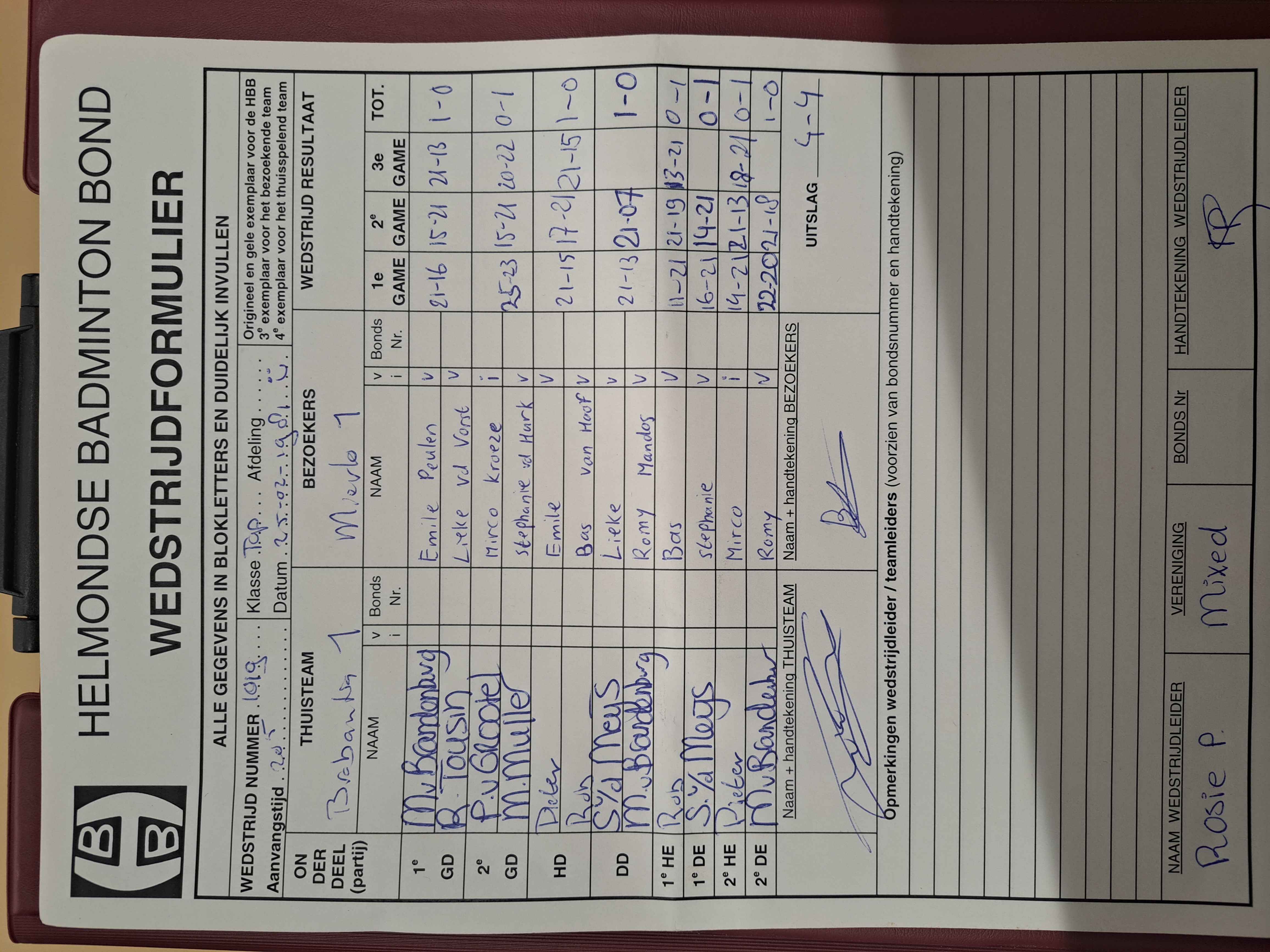 | 1024 | do 19-03-2026 | Mixed 1 | - | Mierlo 1 | 3 | 5 - 3 | |||