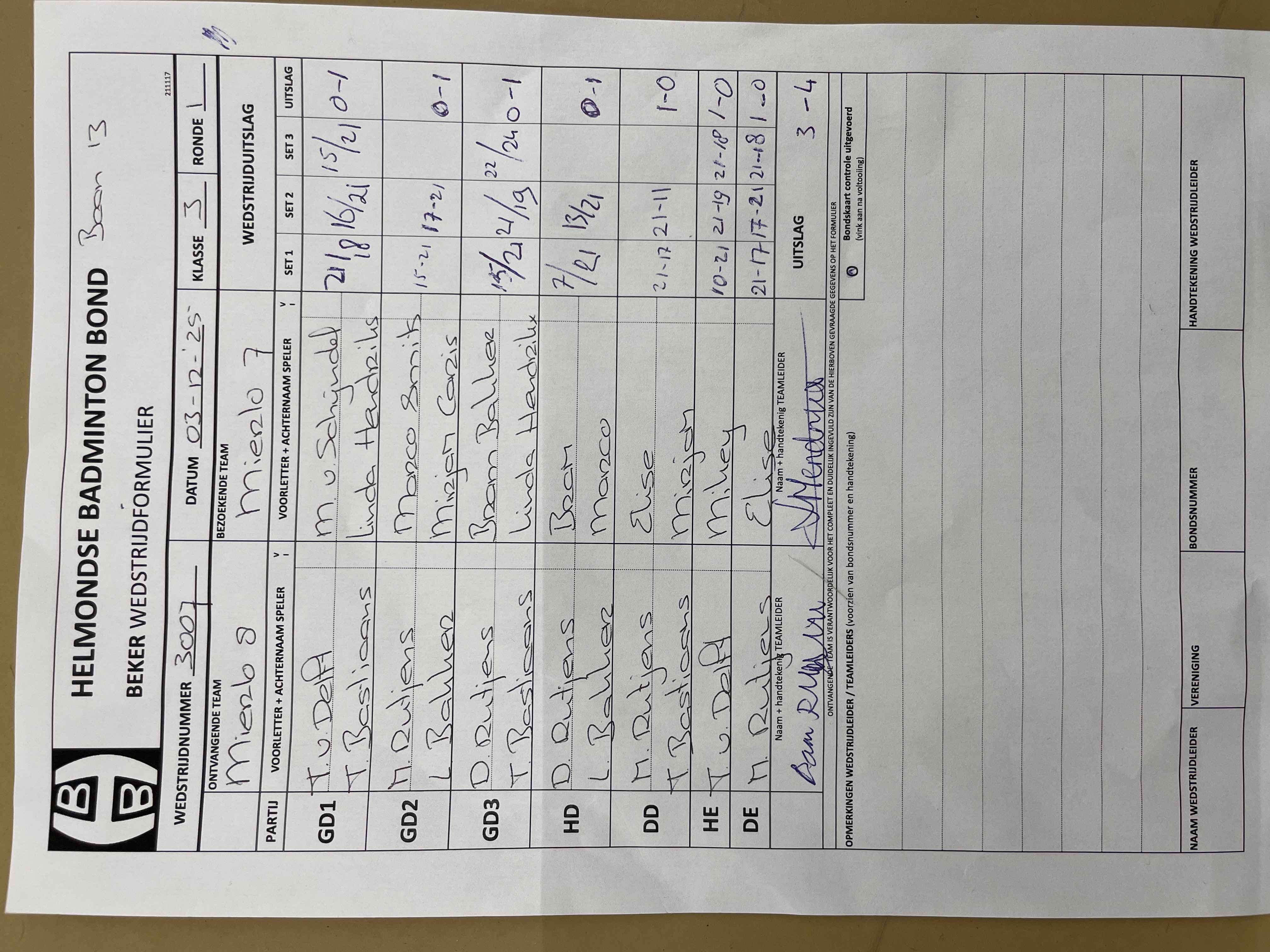 | 3007 | wo 03-12-2025 | Mierlo 8 | - | Mierlo 7 | 13 | 3 - 4 | |||