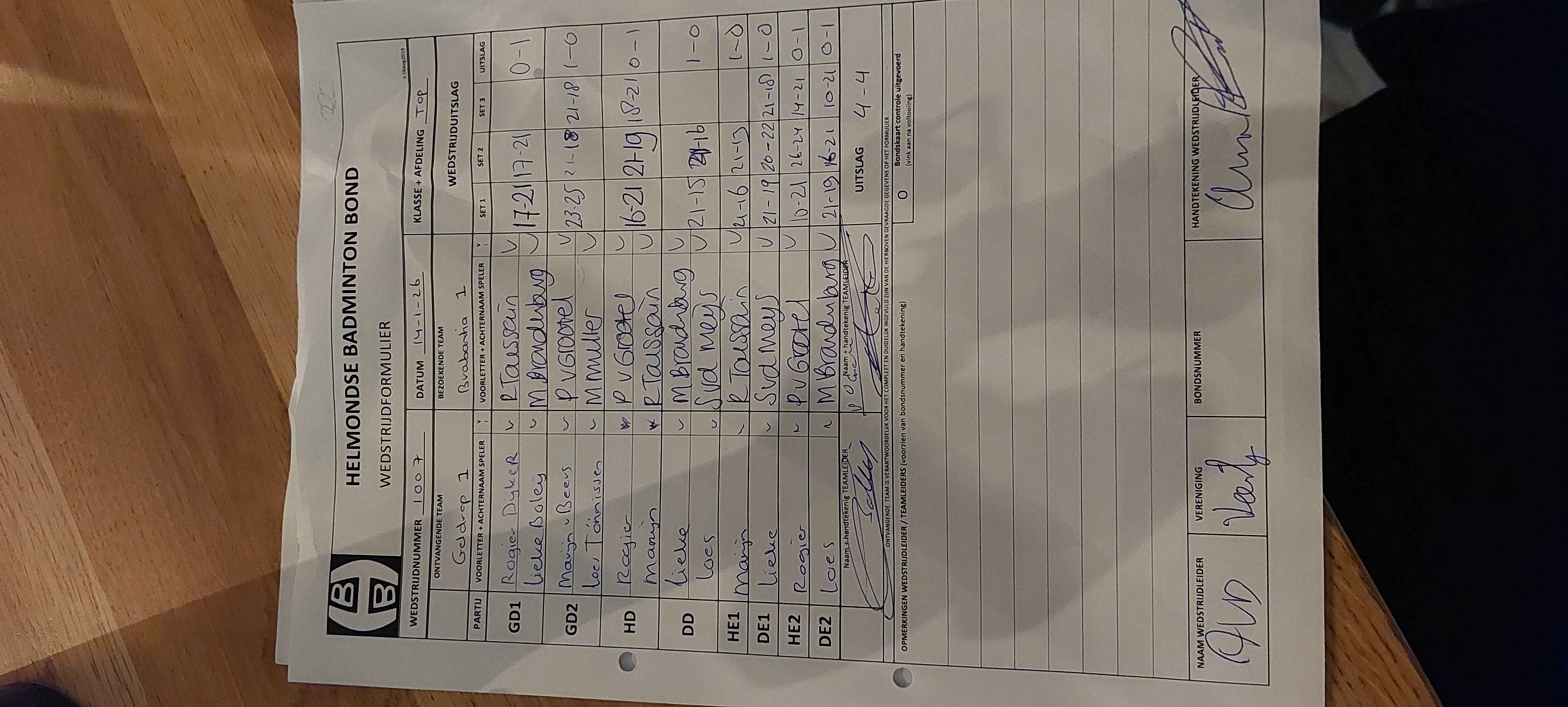 | 1007 | wo 14-01-2026 | Geldrop 1 | - | Brabantia 1 | 4 | 4 - 4 | |||