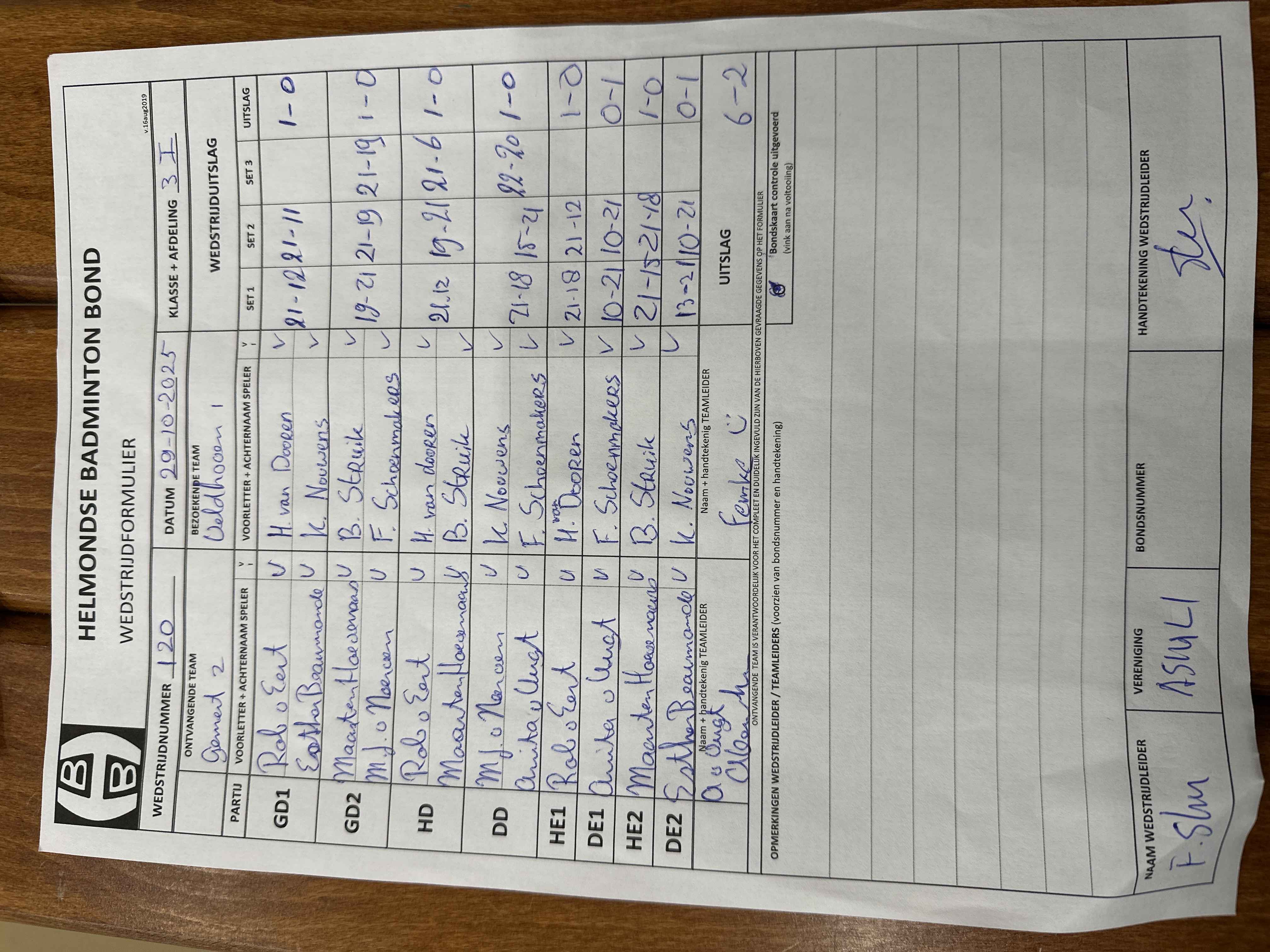 | 120 | wo 29-10-2025 | Gemert 2 | - | Veldhoven 1 | 11 | 6 - 2 | |||