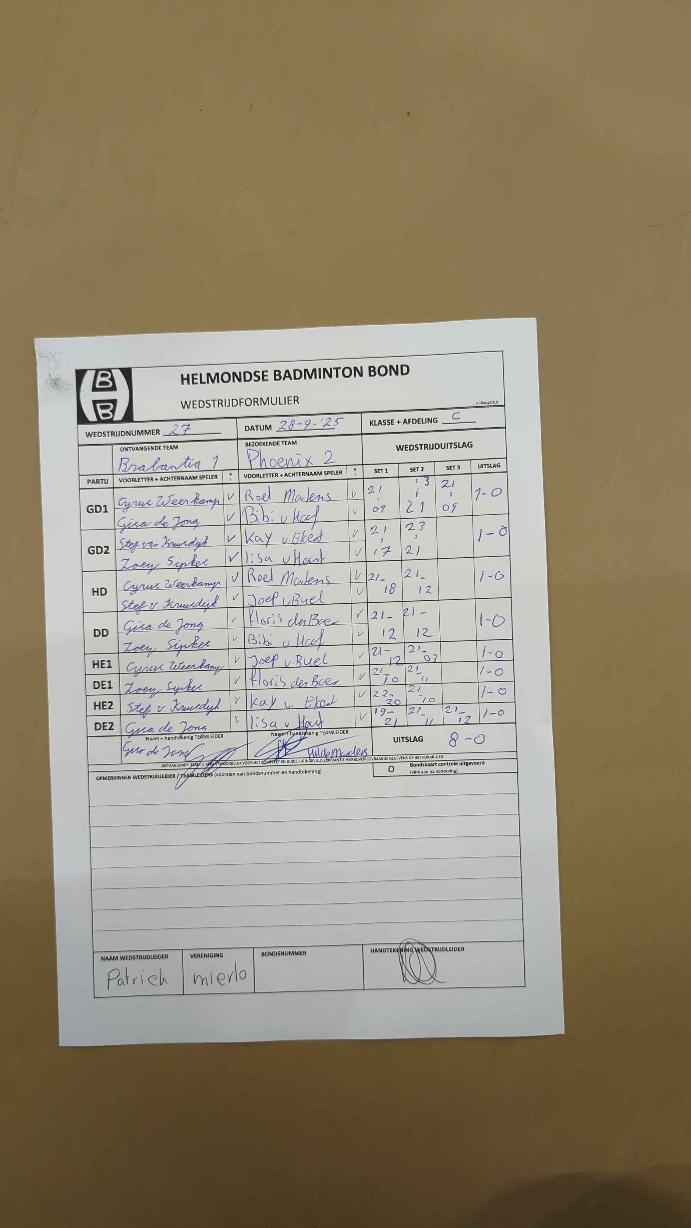 | 09:30 | zo 05-10-2025 | Mixed 3 | - | Brabantia 1 | 3 | 5 - 3 | ||