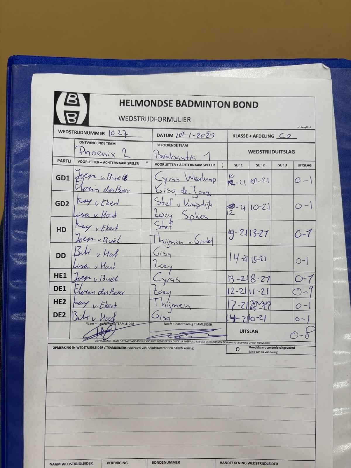 | 09:30 | zo 18-01-2026 | Phoenix 2 | - | Brabantia 1 | 1 | 0 - 8 | ||