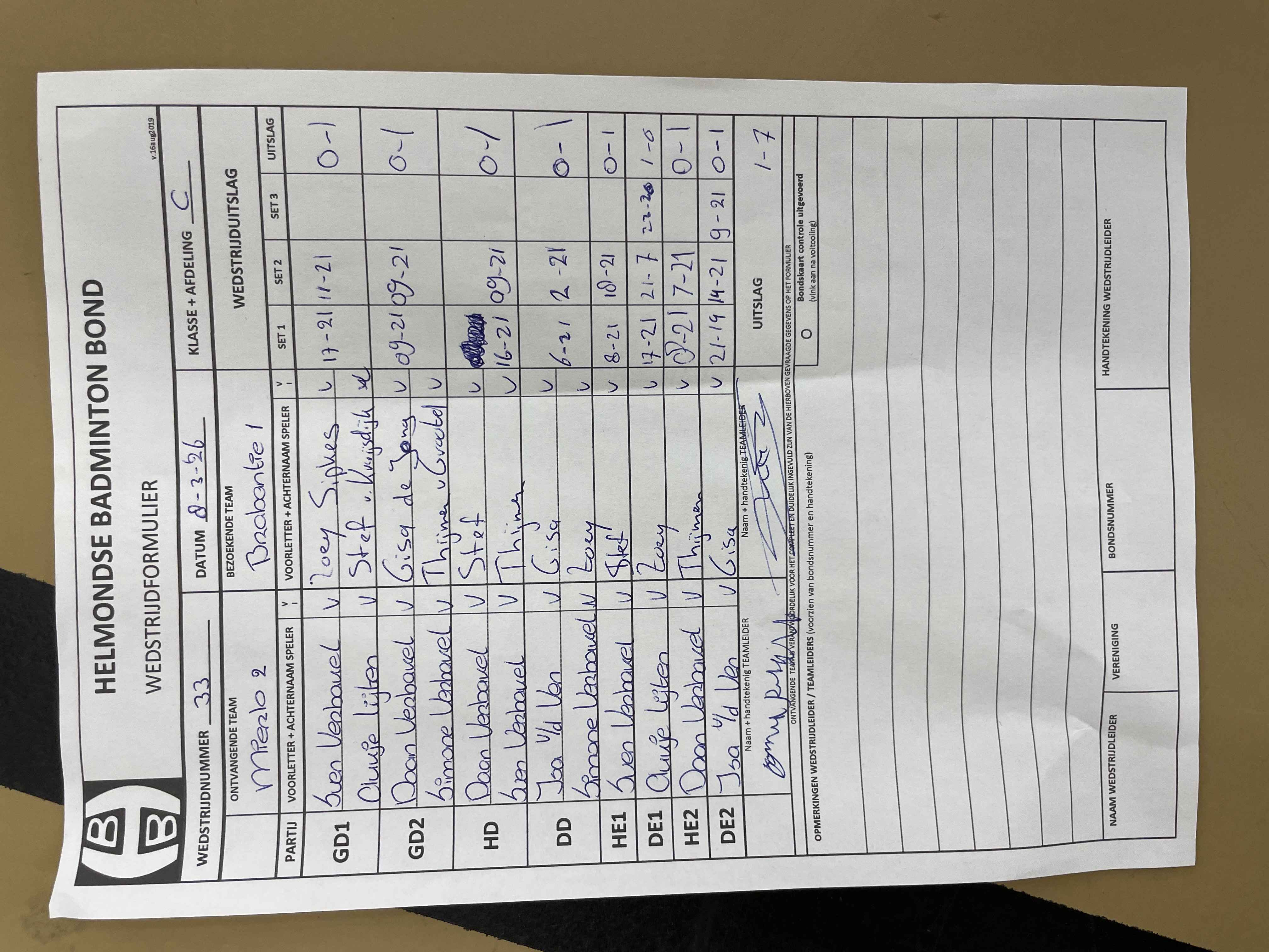 | 12:30 | zo 09-11-2025 | Gemert 2 | - | Brabantia 1 | 1 | 7 - 1 | ||