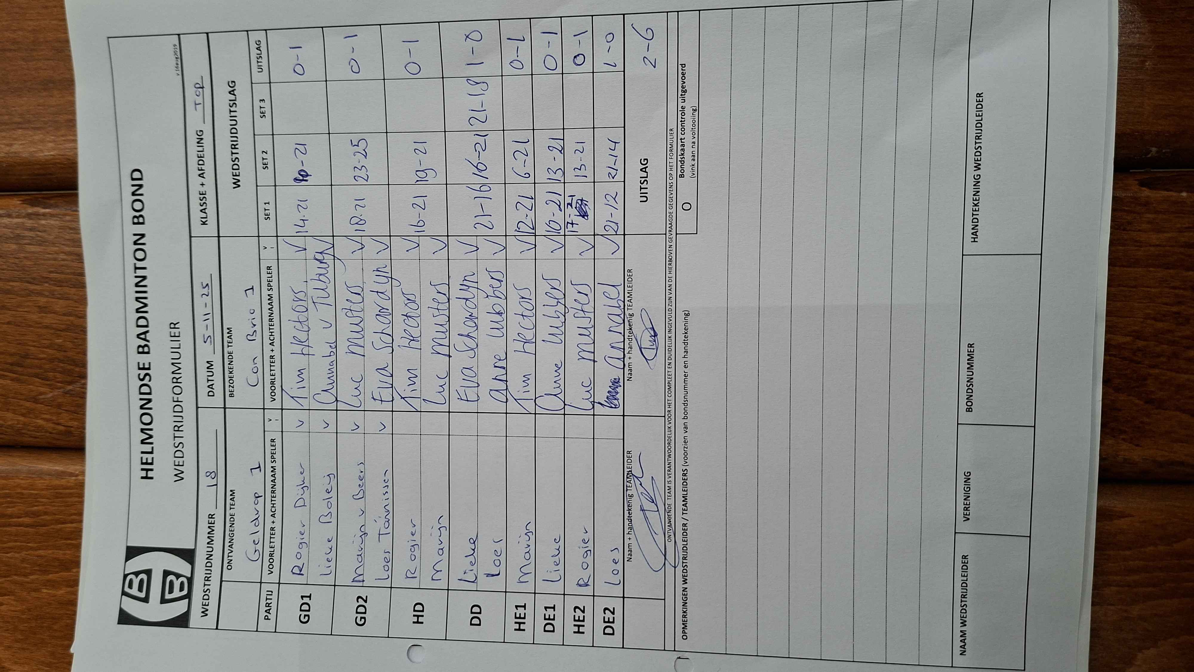 | 18 | wo 05-11-2025 | Geldrop 1 | - | Con Brio 1 | 1 | 2 - 6 | |||