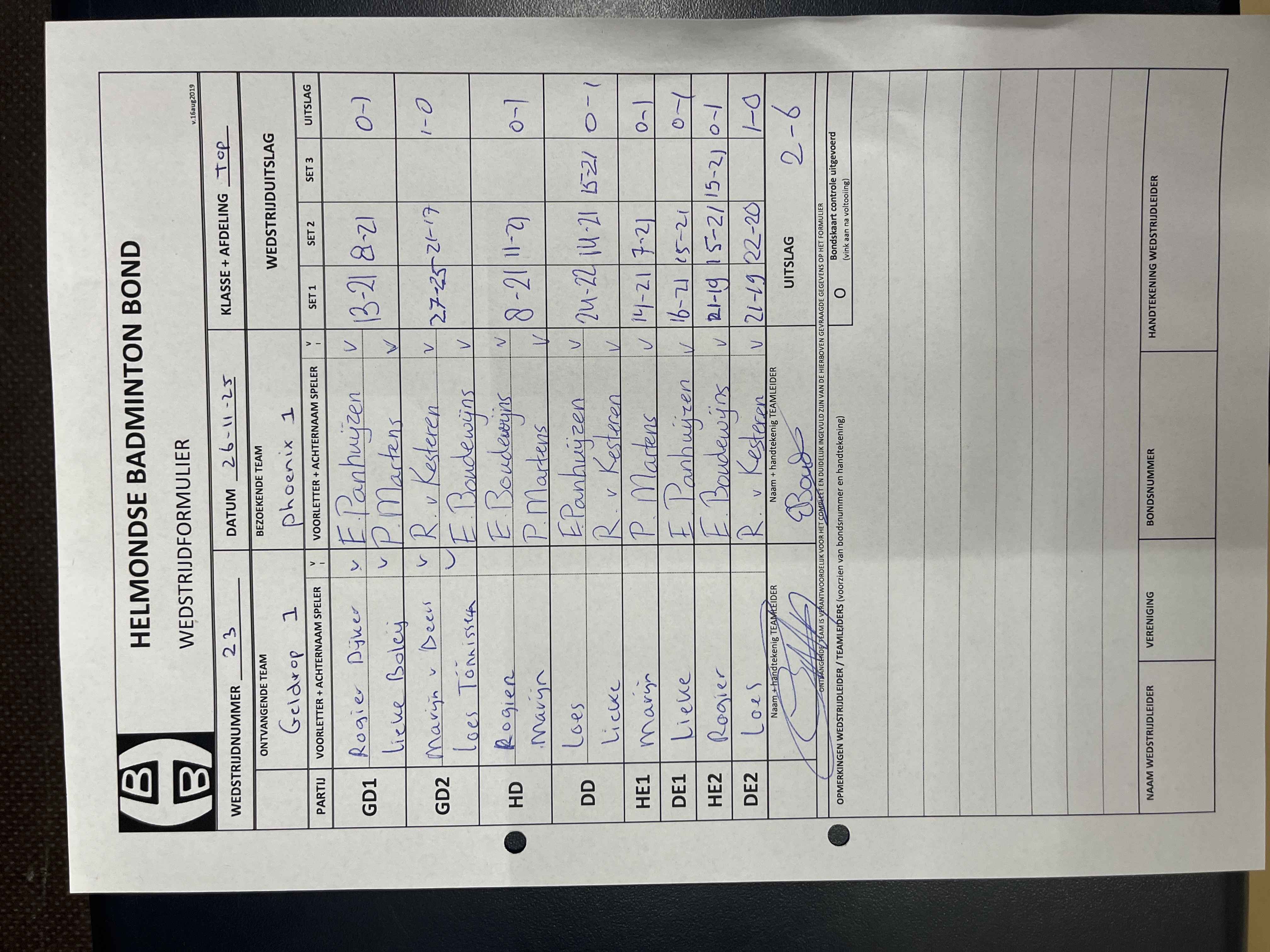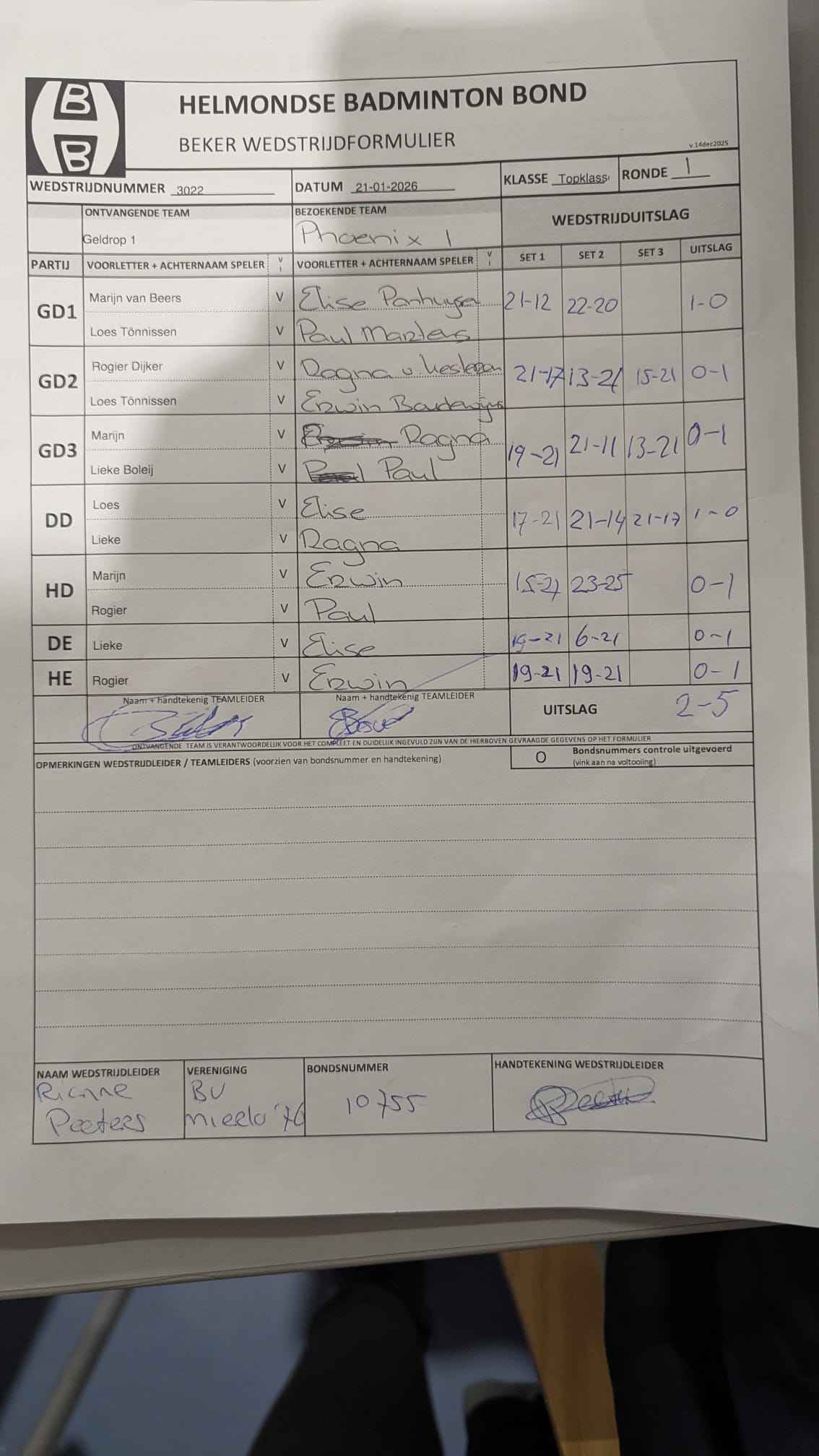 | 23 | wo 26-11-2025 | Geldrop 1 | - | Phoenix 1 | 1 | 2 - 6 | |||