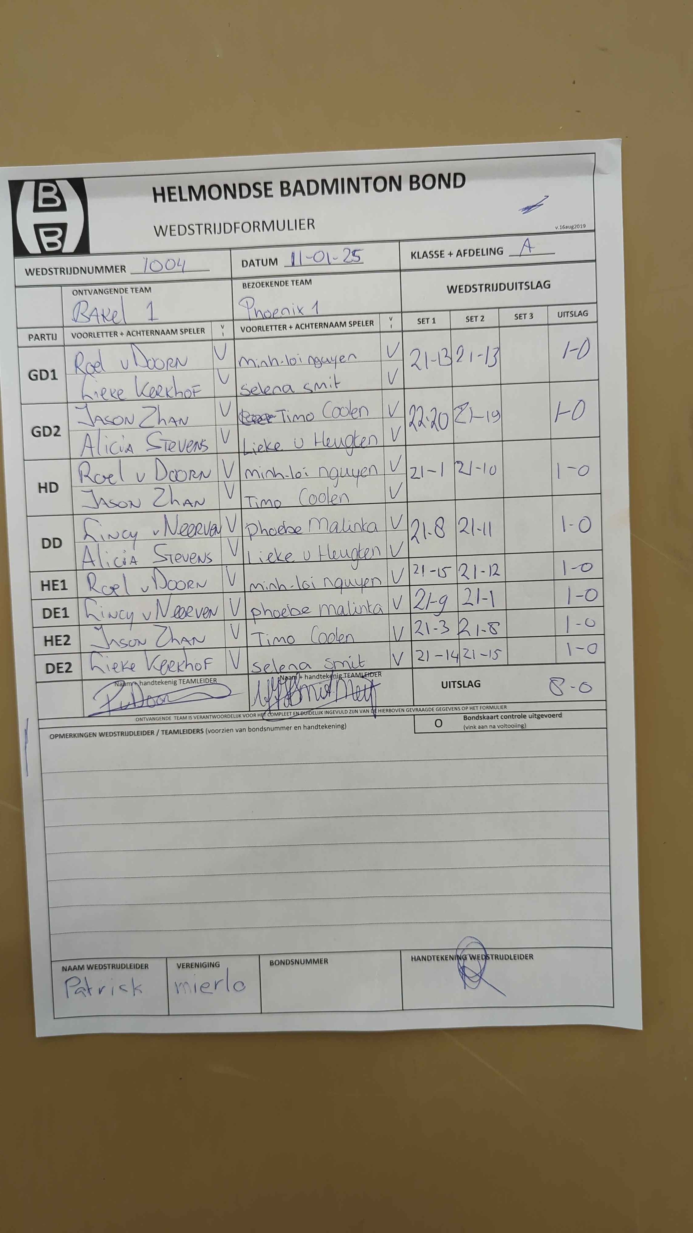| 09:30 | zo 25-01-2026 | Mixed 2 | - | Bakel 1 | 1 | 0 - 8 | ||