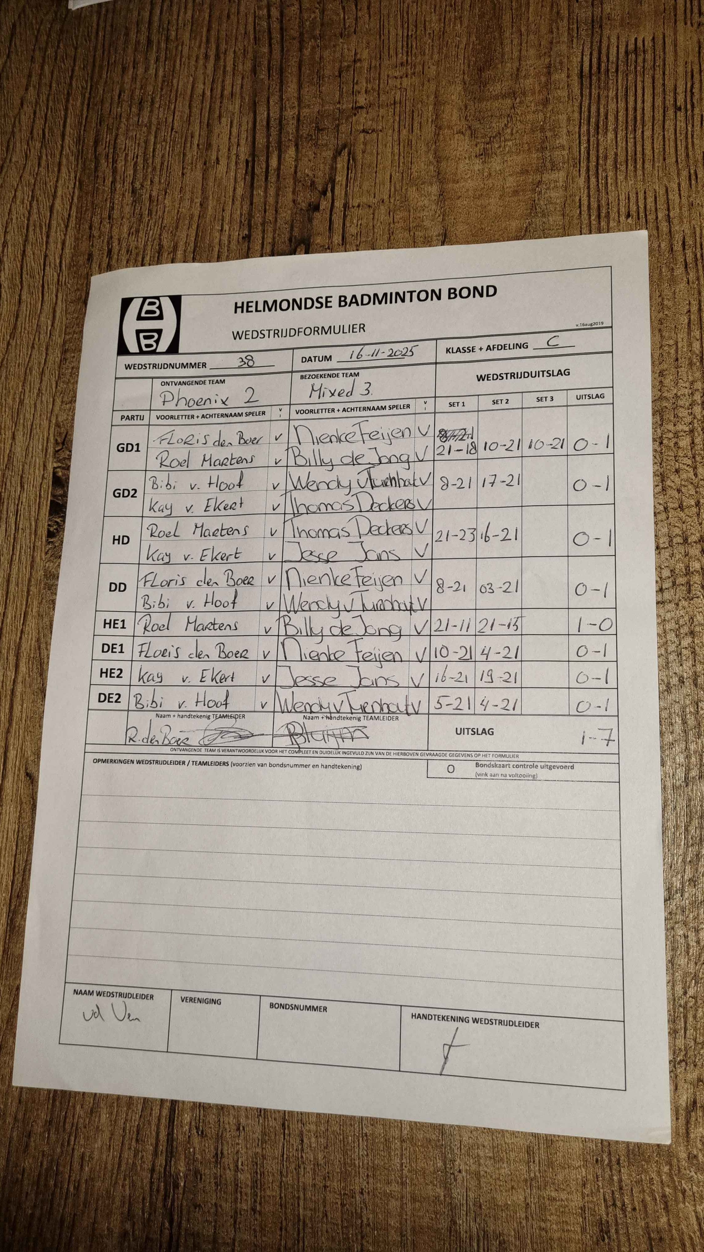 | 09:30 | zo 16-11-2025 | Phoenix 2 | - | Mixed 3 | 5 | 1 - 7 | ||
