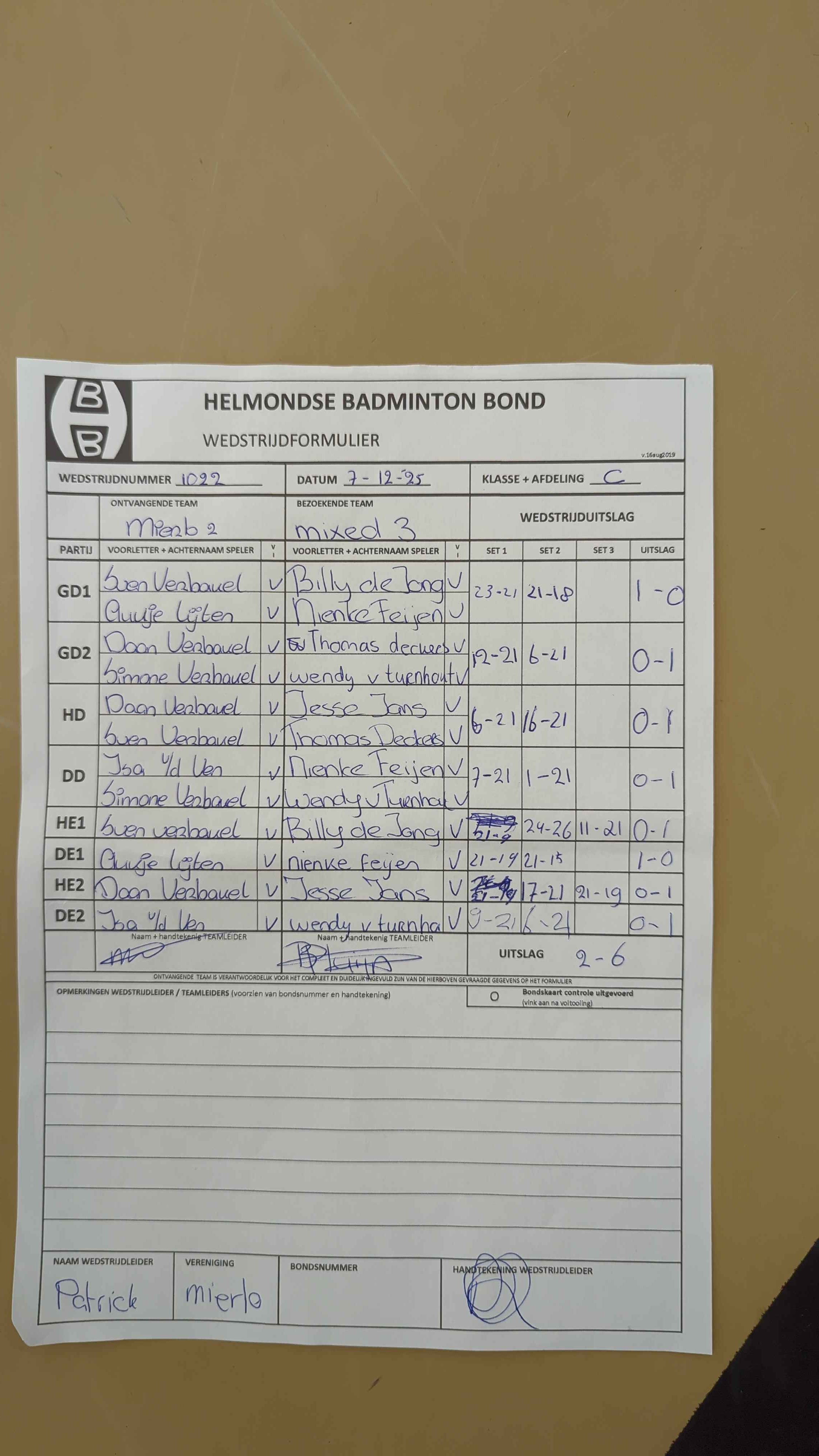 | 09:30 | zo 07-12-2025 | Mierlo 2 | - | Mixed 3 | 4 | 2 - 6 | ||