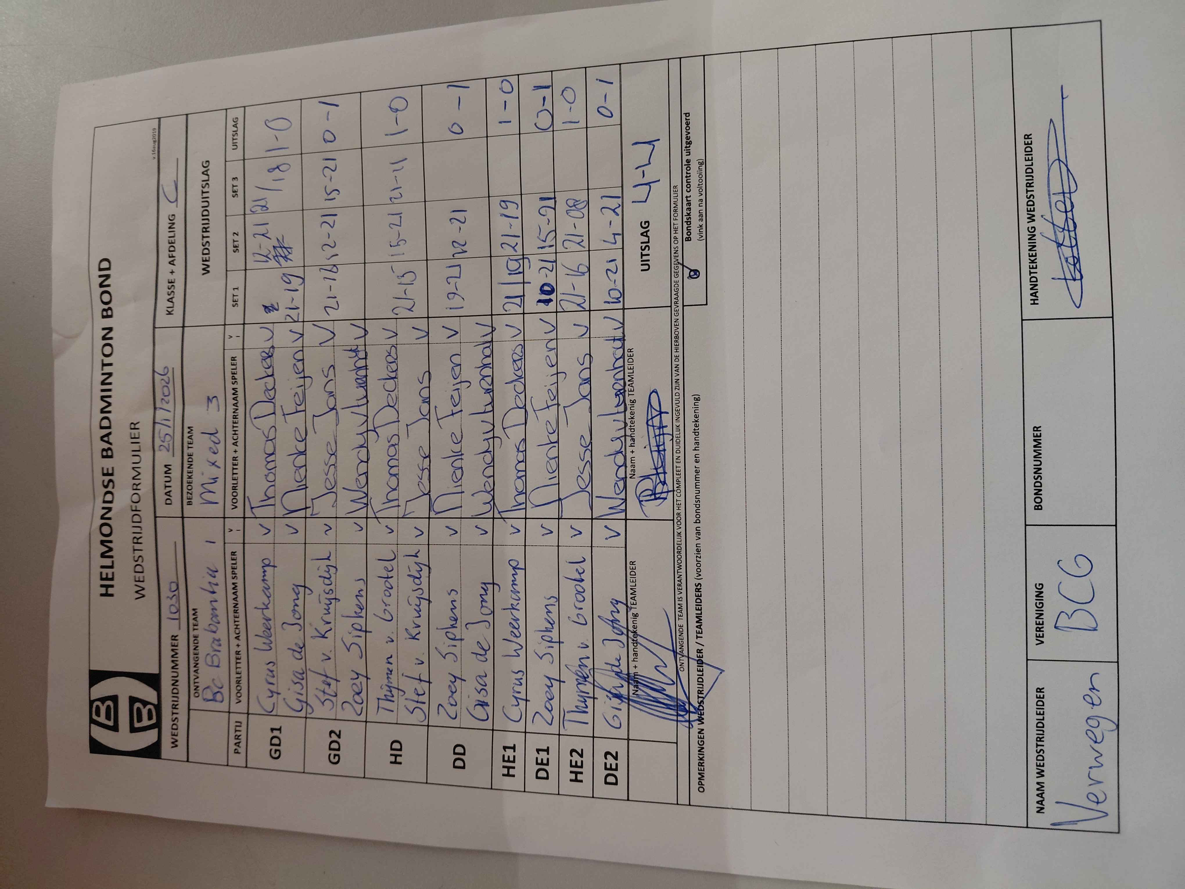 | 09:30 | zo 05-10-2025 | Mixed 3 | - | Brabantia 1 | 3 | 5 - 3 | ||