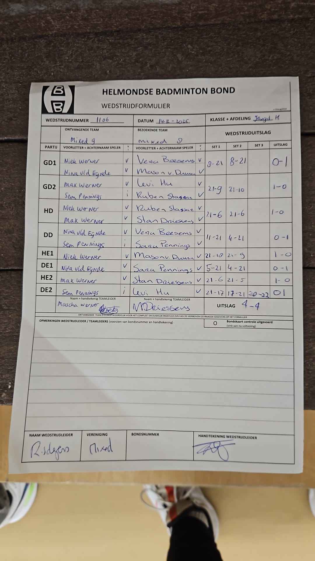 | 09:30 | zo 14-12-2025 | Mixed 9 | - | Mixed 8 | 10 | 4 - 4 | ||