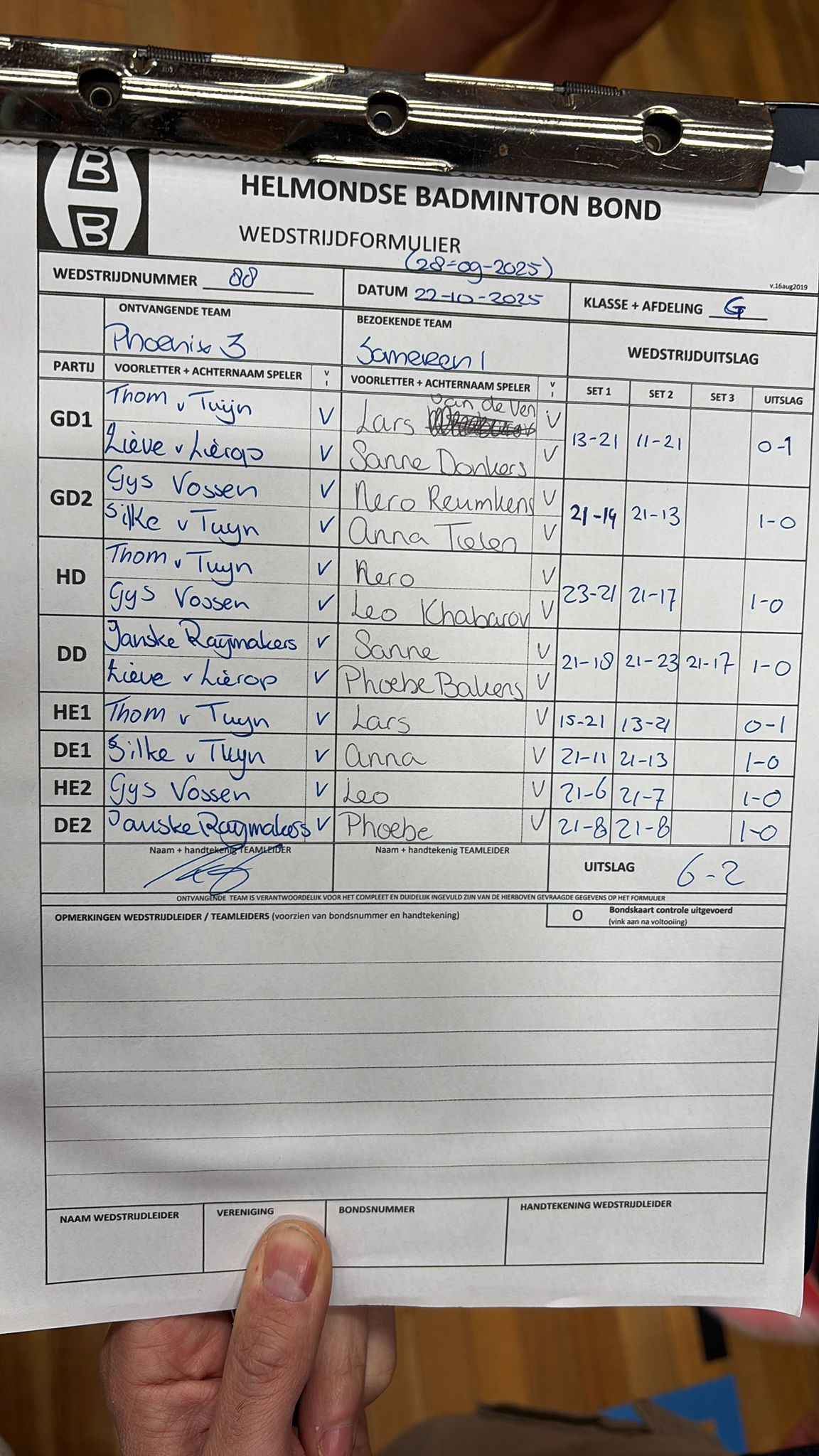 | 09:30 | zo 28-09-2025 | Phoenix 3 | - | Someren 1 | 11 | 6 - 2 | ||