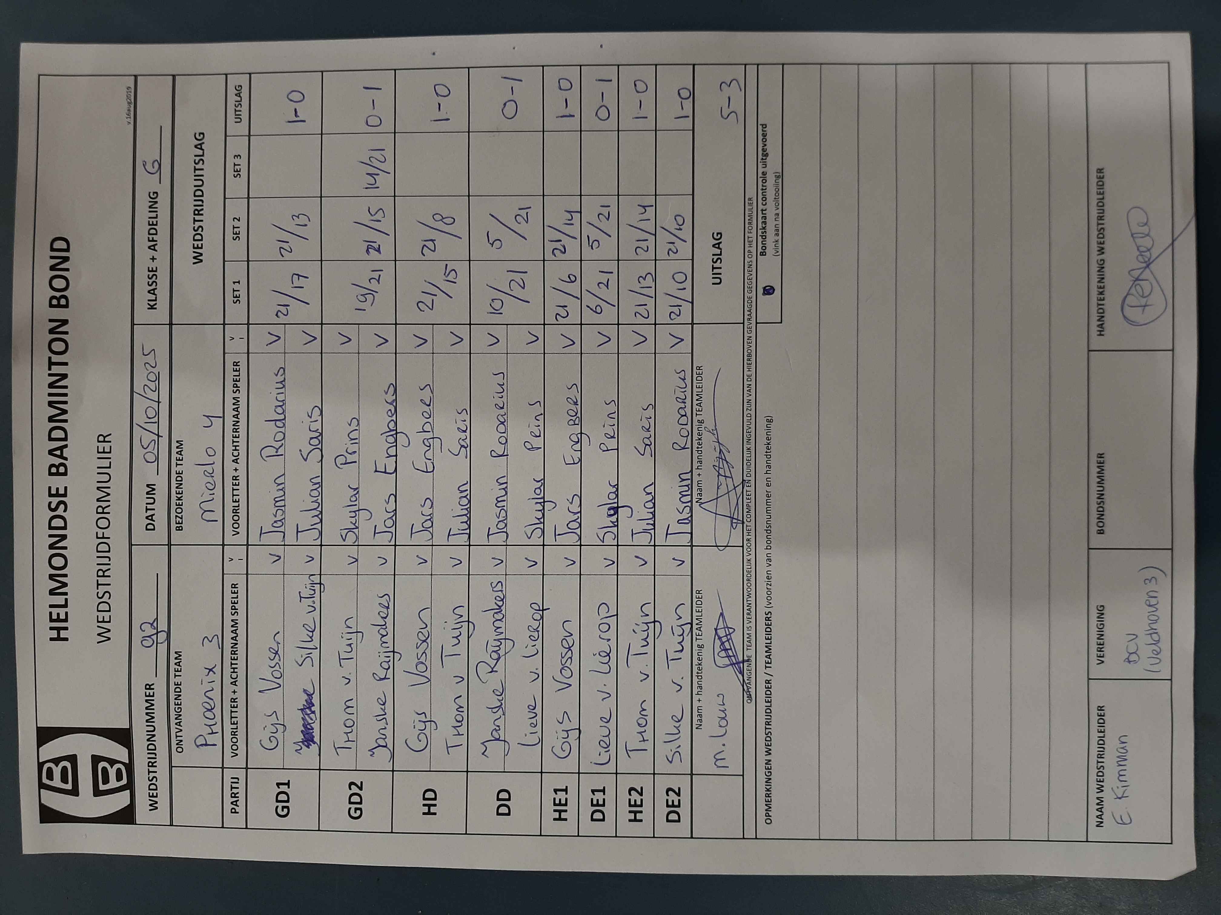 | 09:30 | zo 05-10-2025 | Phoenix 3 | - | Mierlo 4 | 11 | 5 - 3 | ||