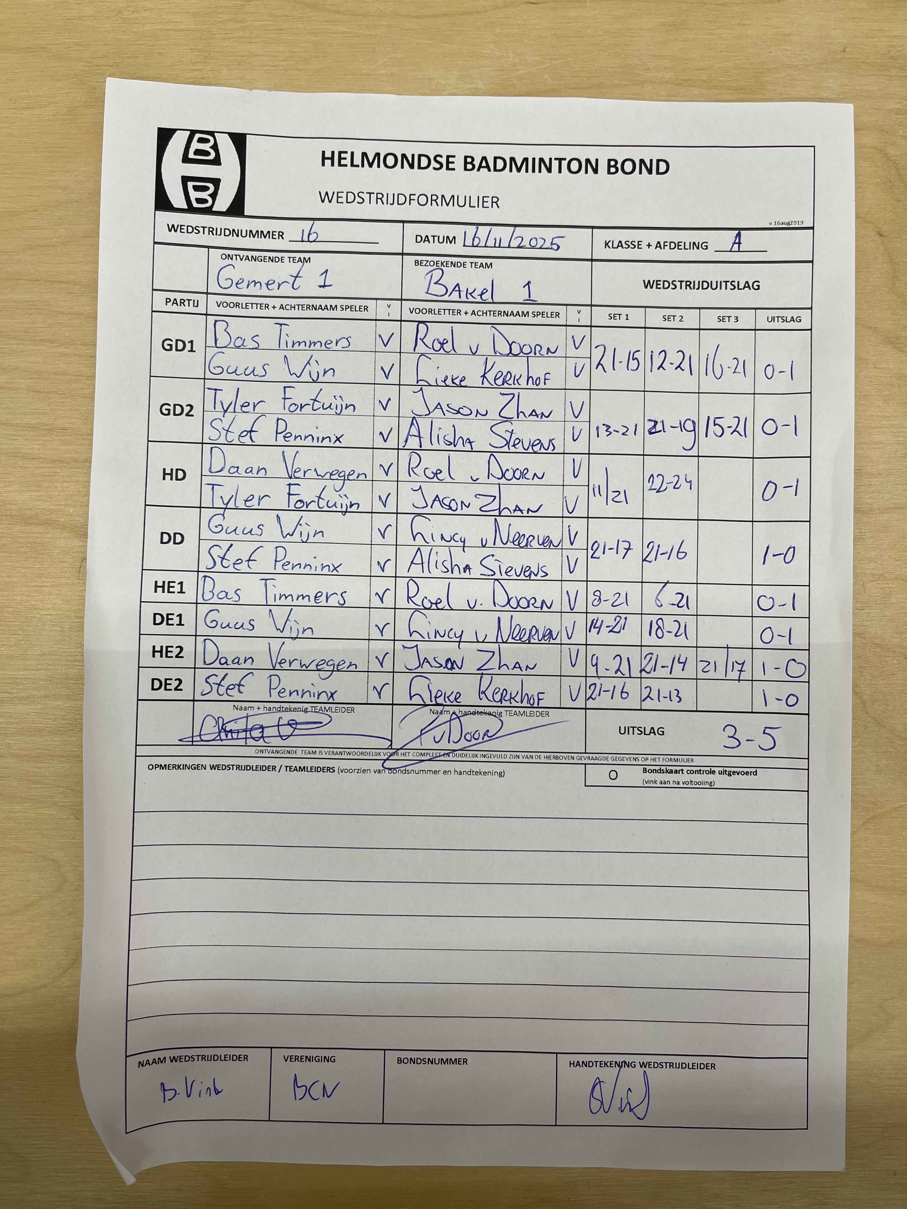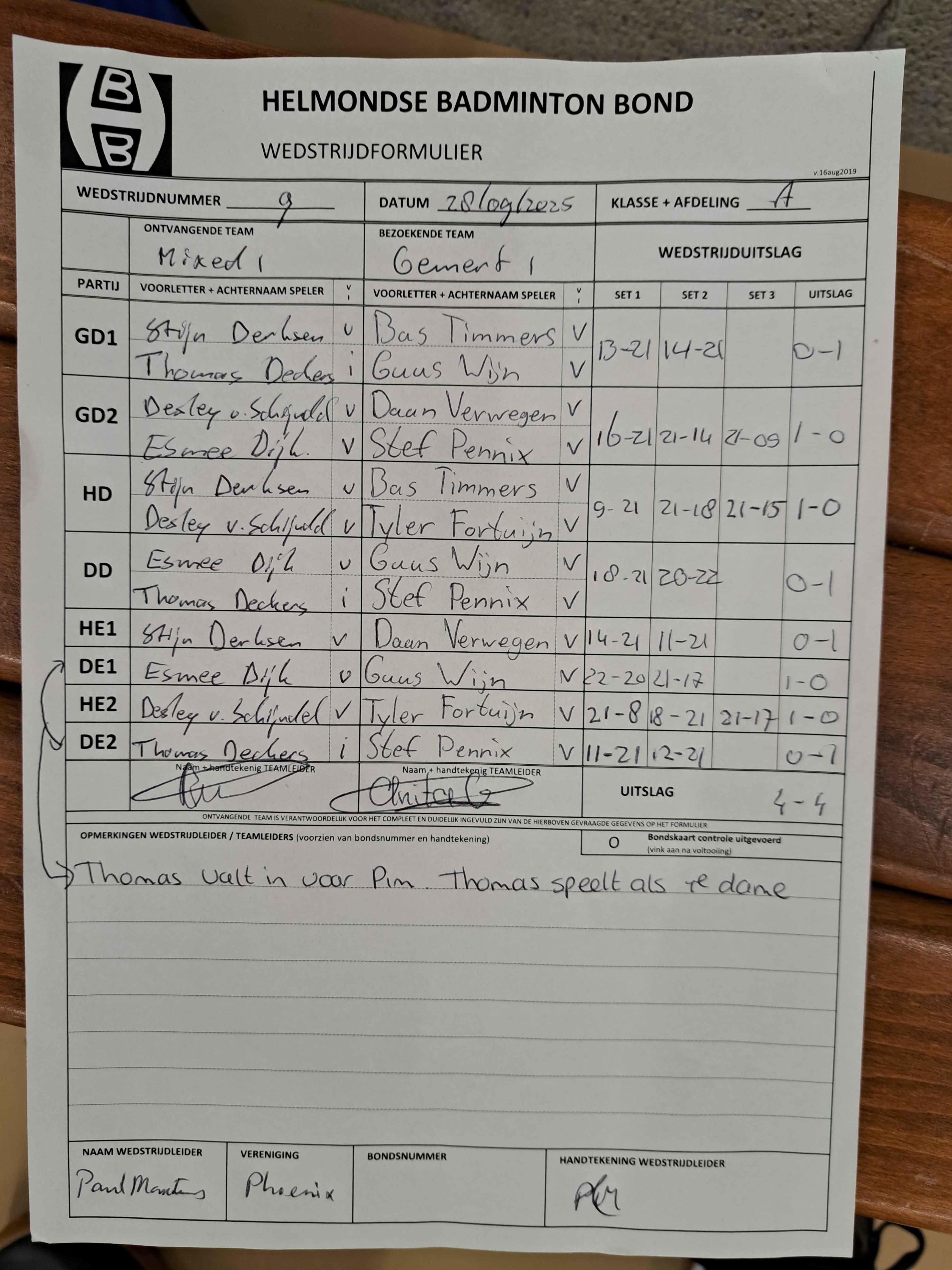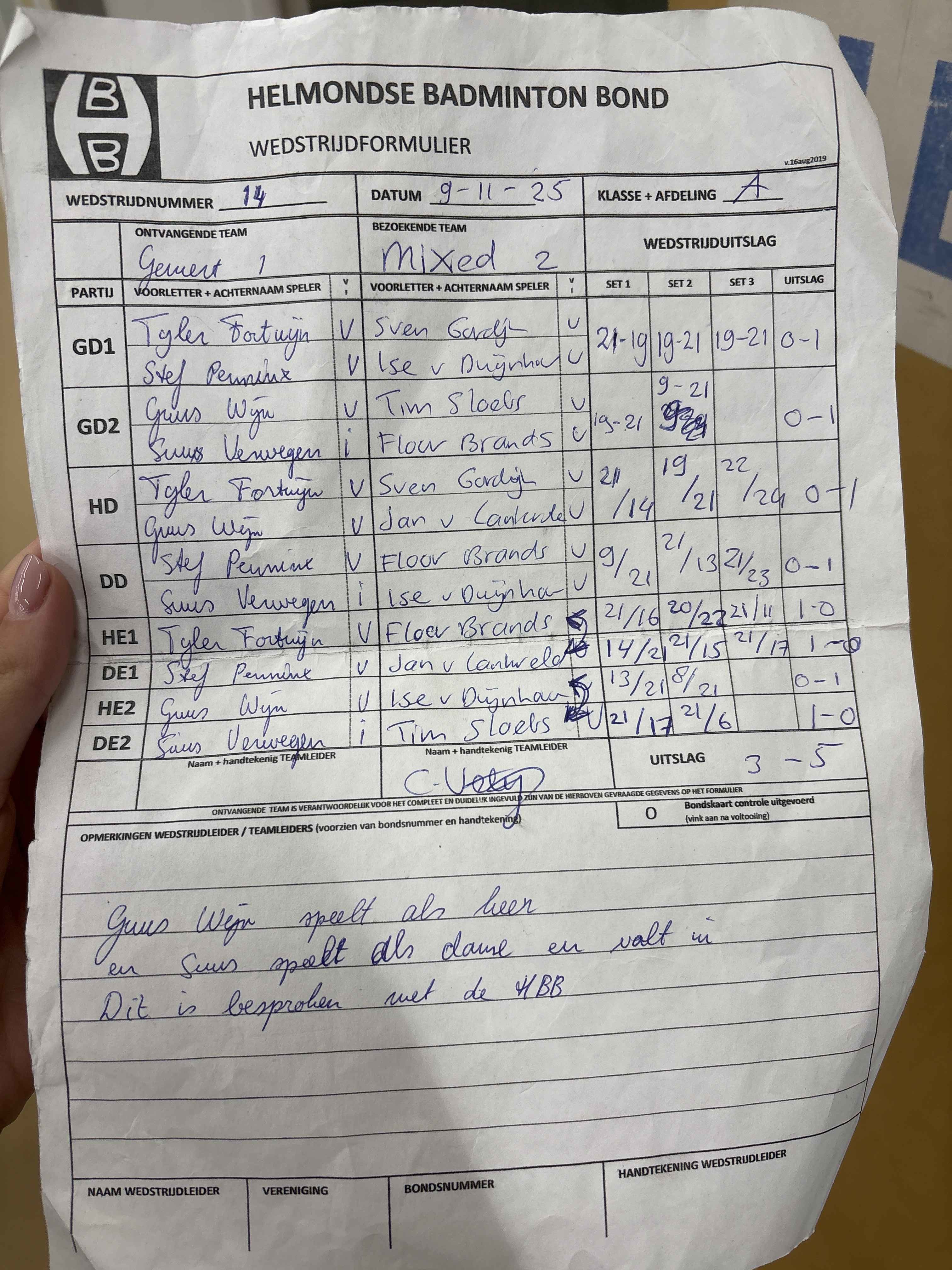 | 09:30 | zo 09-11-2025 | Gemert 1 | - | Mixed 2 | 2 | 3 - 5 | ||