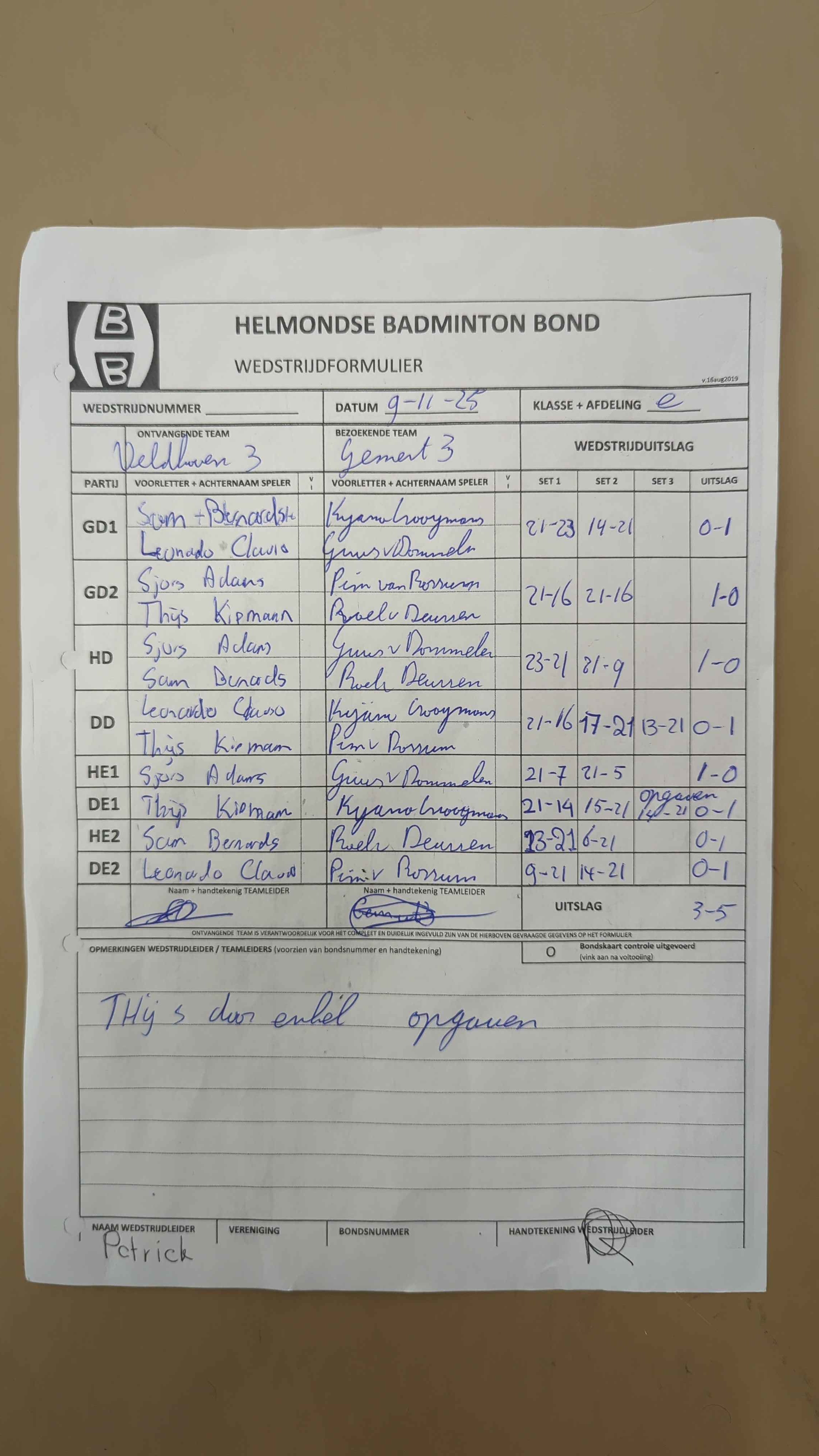 | 09:30 | zo 30-11-2025 | Mixed 4 | - | Gemert 3 | 1 | 5 - 3 | ||