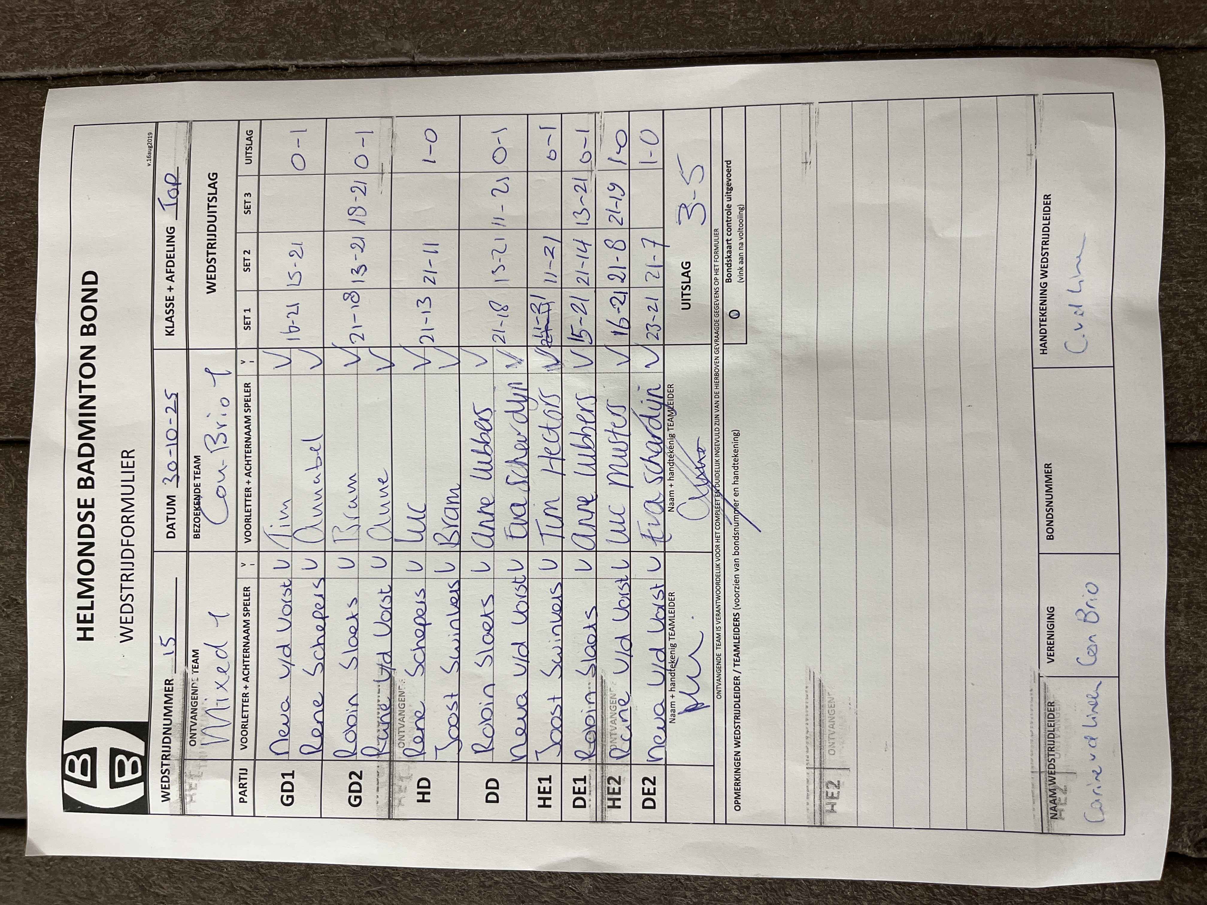 | 10 | do 09-10-2025 | Mixed 1 | - | Geldrop 1 | 11 | 5 - 3 | |||