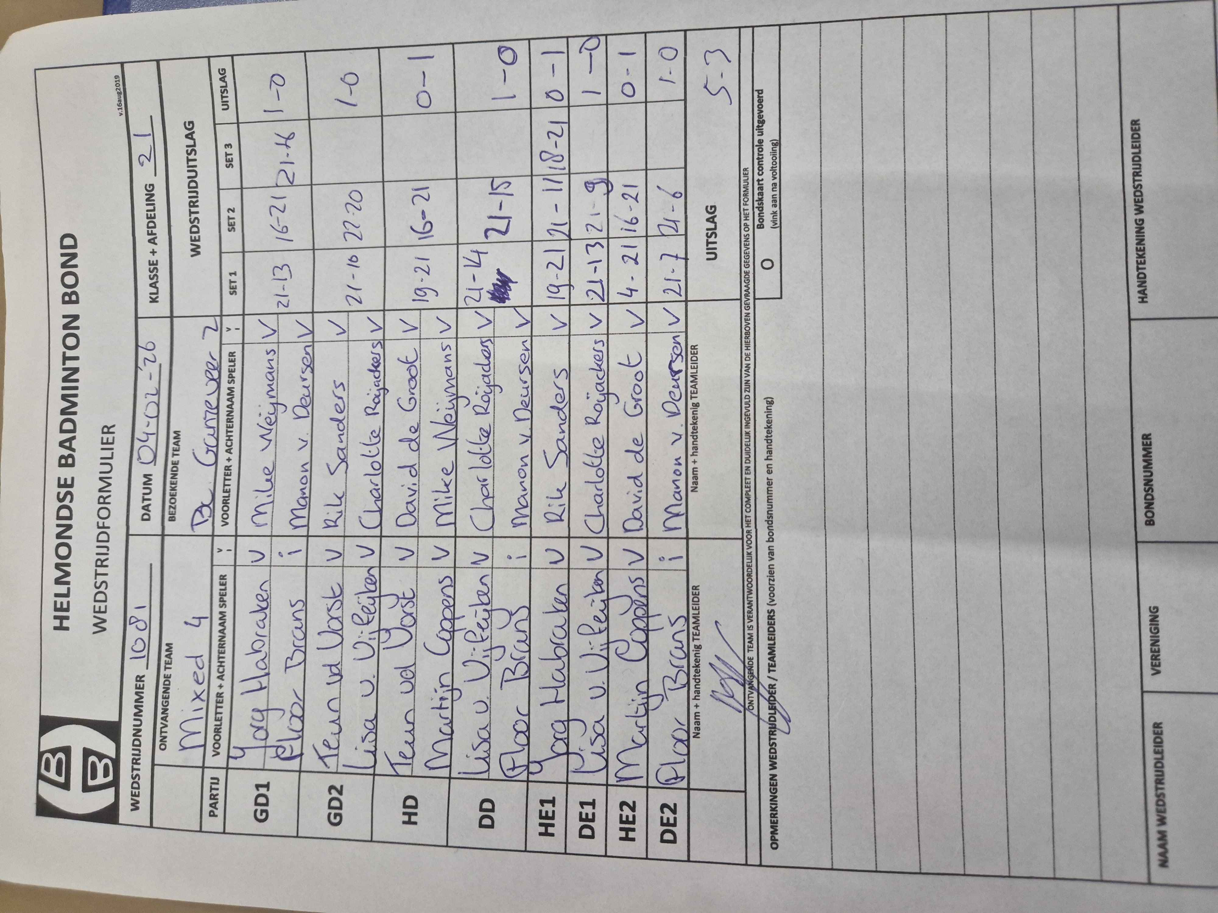 | 1081 | wo 04-02-2026 | Mixed 4 | - | Ganzeveer 2 | 11 | 5 - 3 | |||