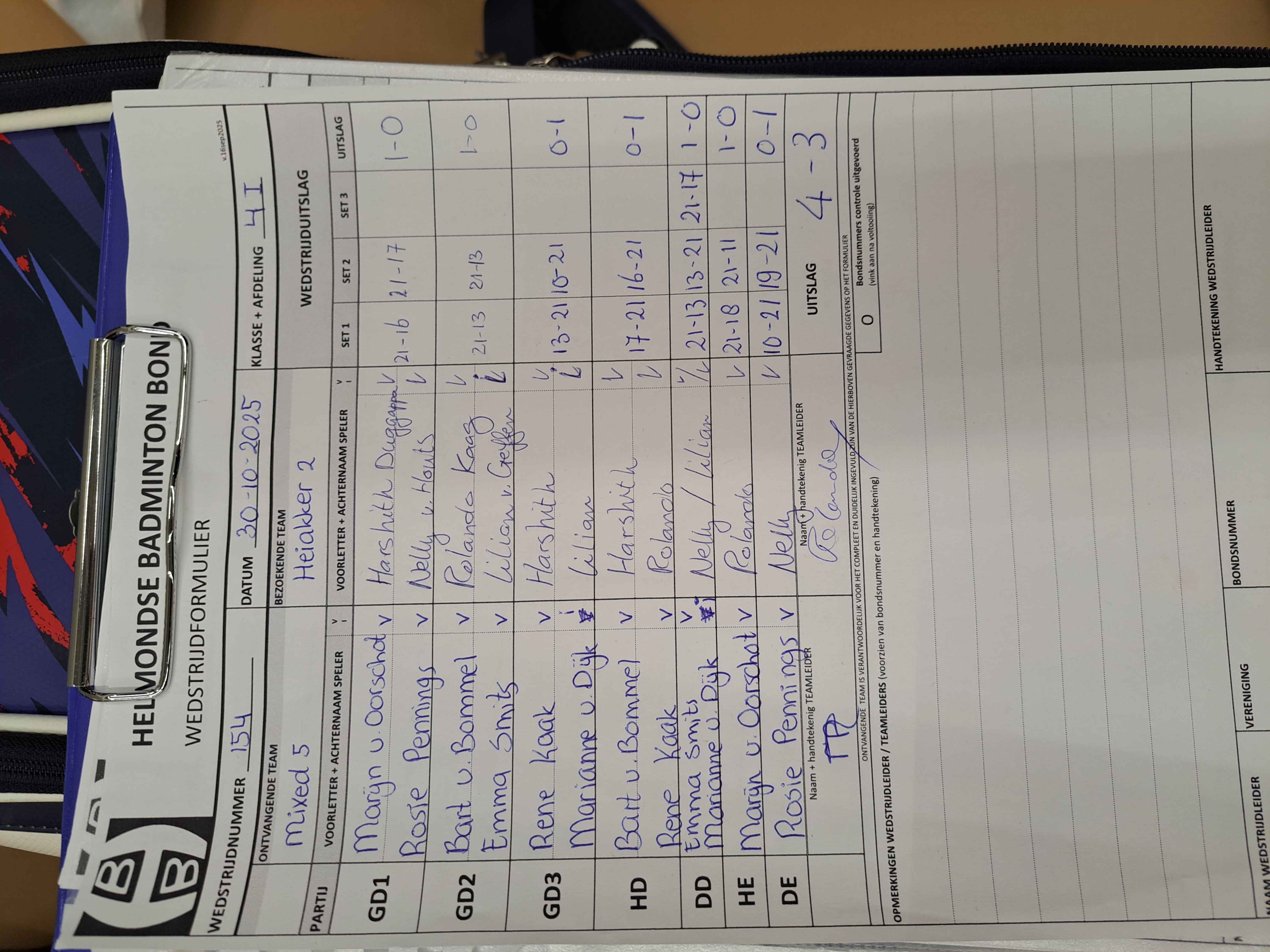 | 158 | wo 05-11-2025 | Mixed 5 | - | Gemert 3 | 11 | 4 - 3 | |||