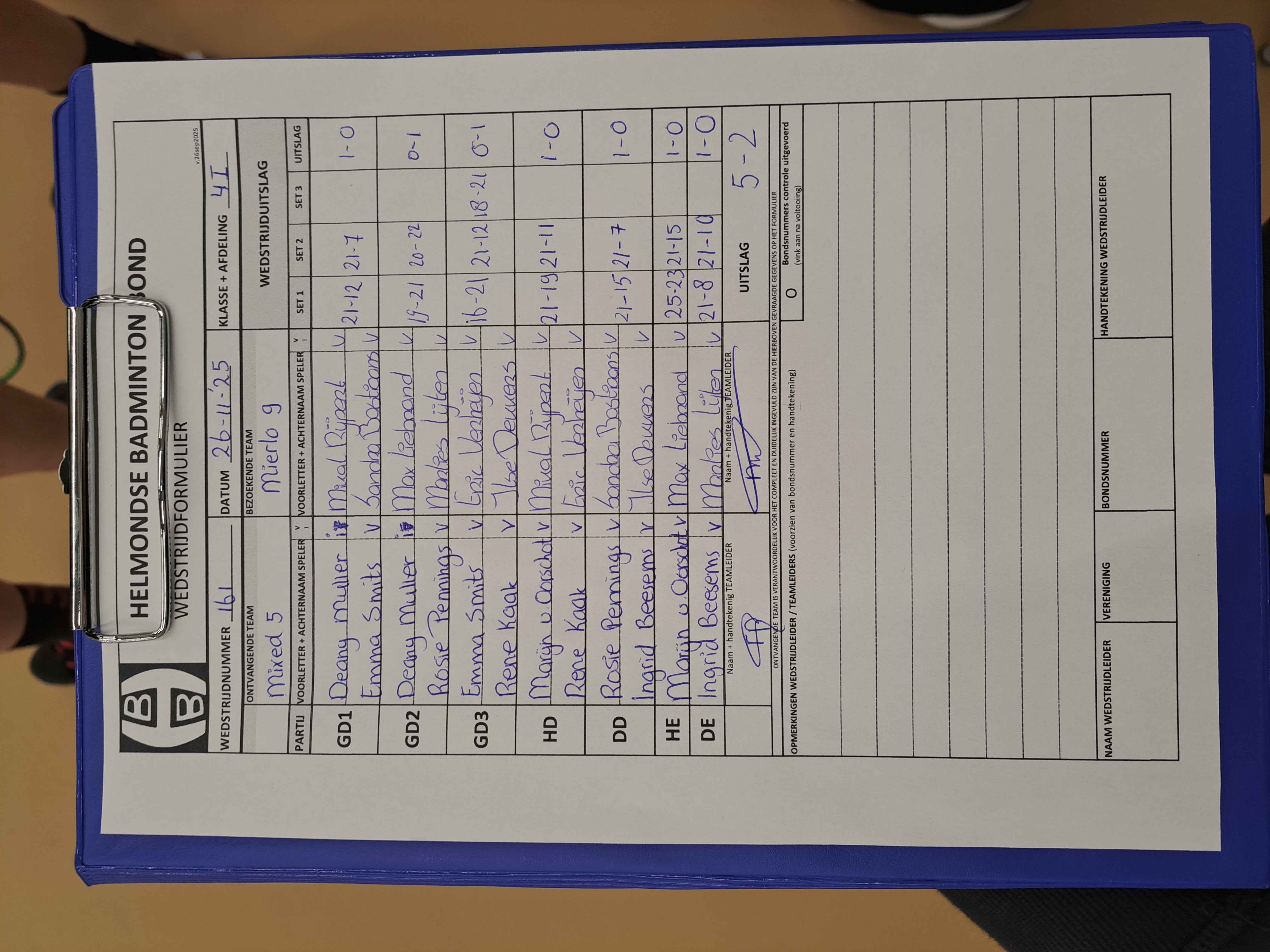 | 161 | wo 26-11-2025 | Mixed 5 | - | Mierlo 9 | 14 | 5 - 2 | |||