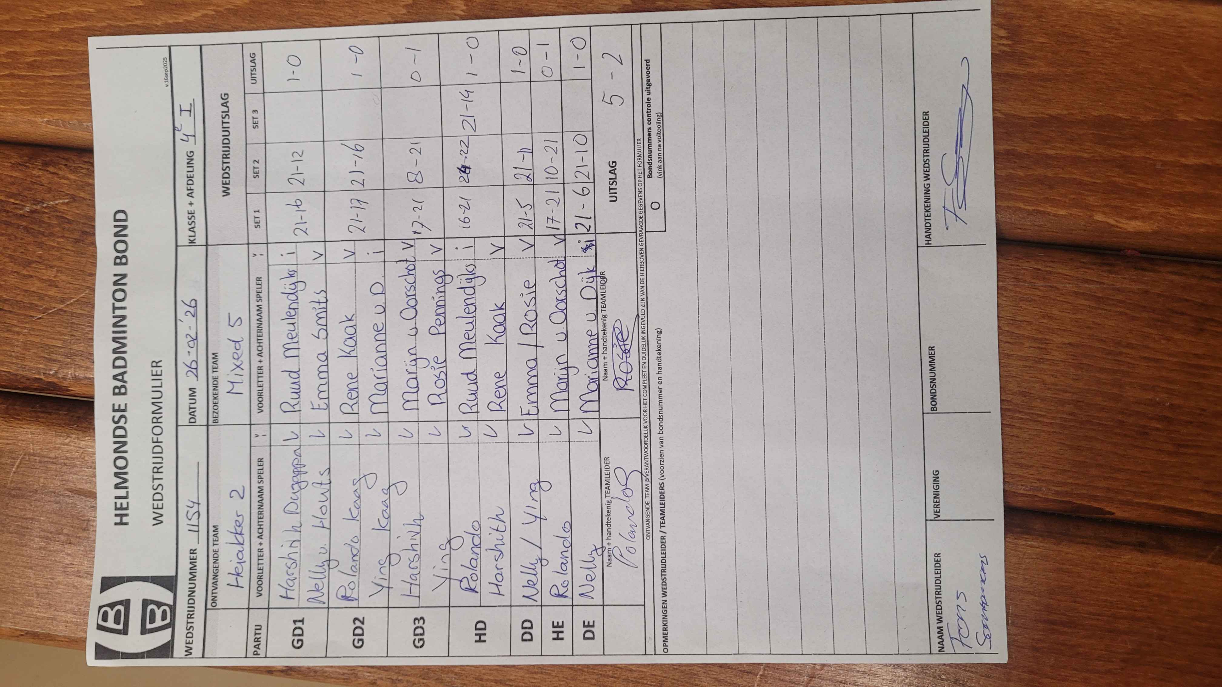 | 1154 | do 26-02-2026 | Heiakker 2 | - | Mixed 5 | 2 | 5 - 2 | |||