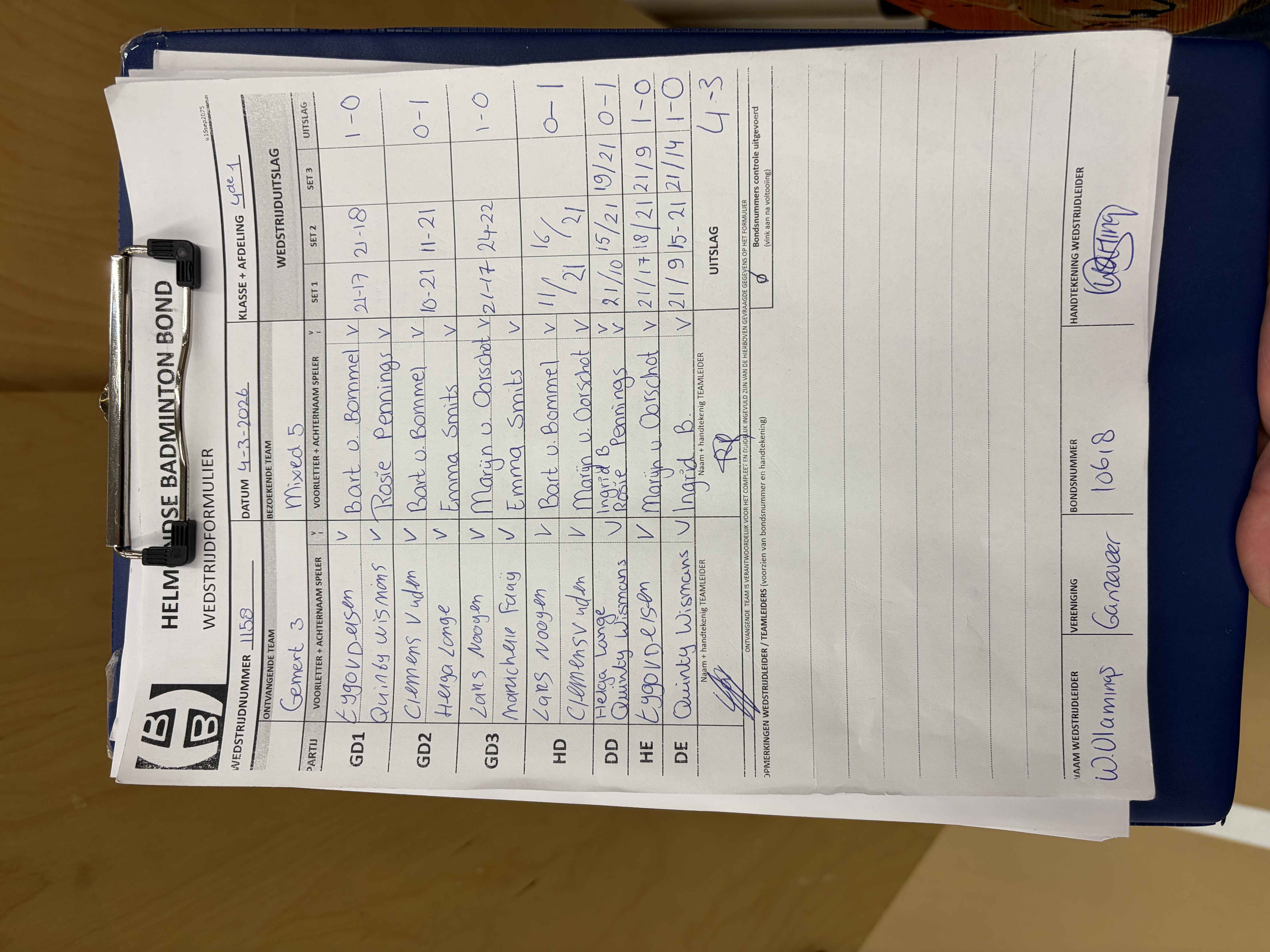 | 1158 | wo 04-03-2026 | Gemert 3 | - | Mixed 5 | 5 | 4 - 3 | |||