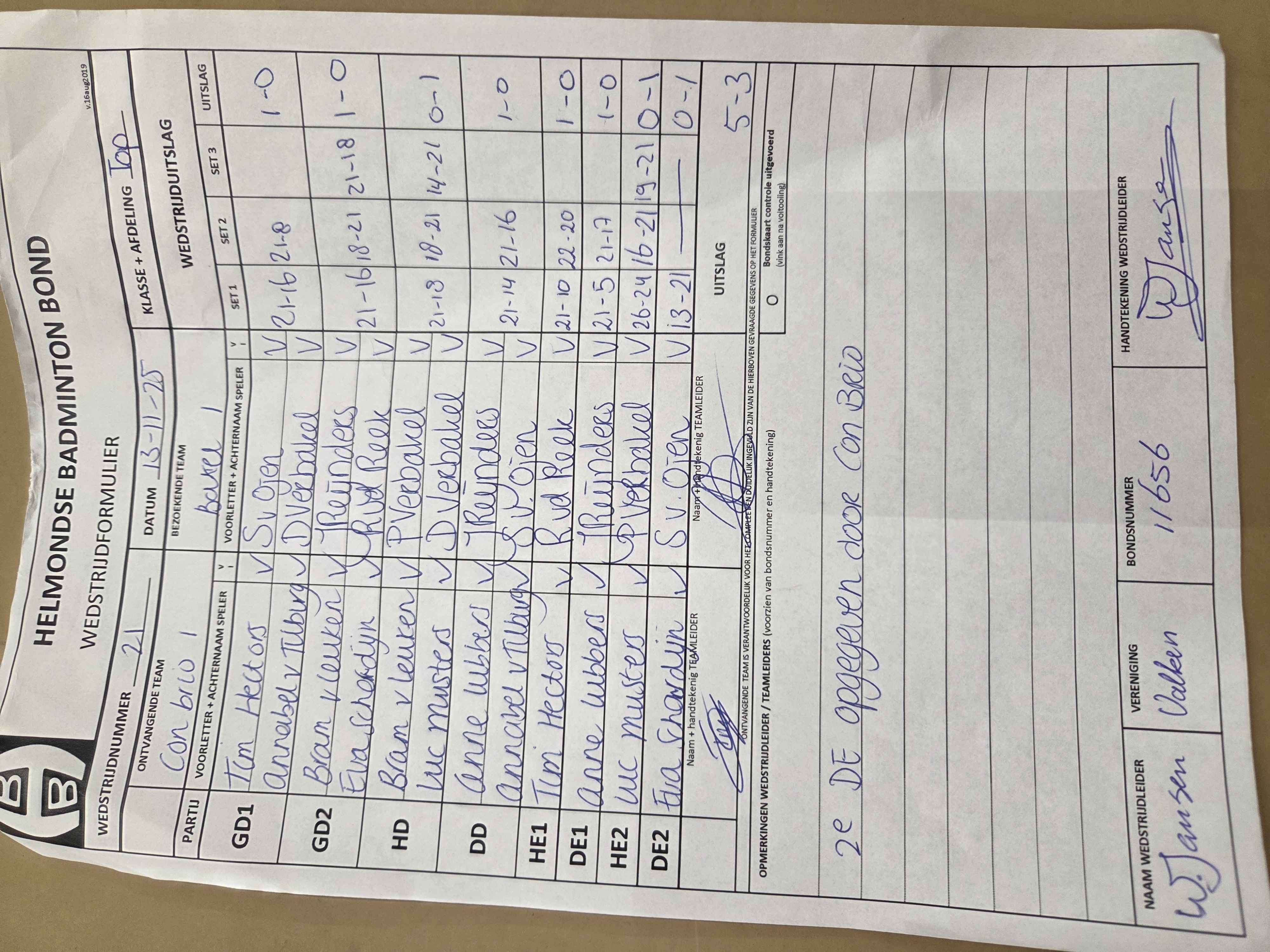 | 1009 | do 05-02-2026 | Mierlo 1 | - | Bakel 1 | 2 | - | |||