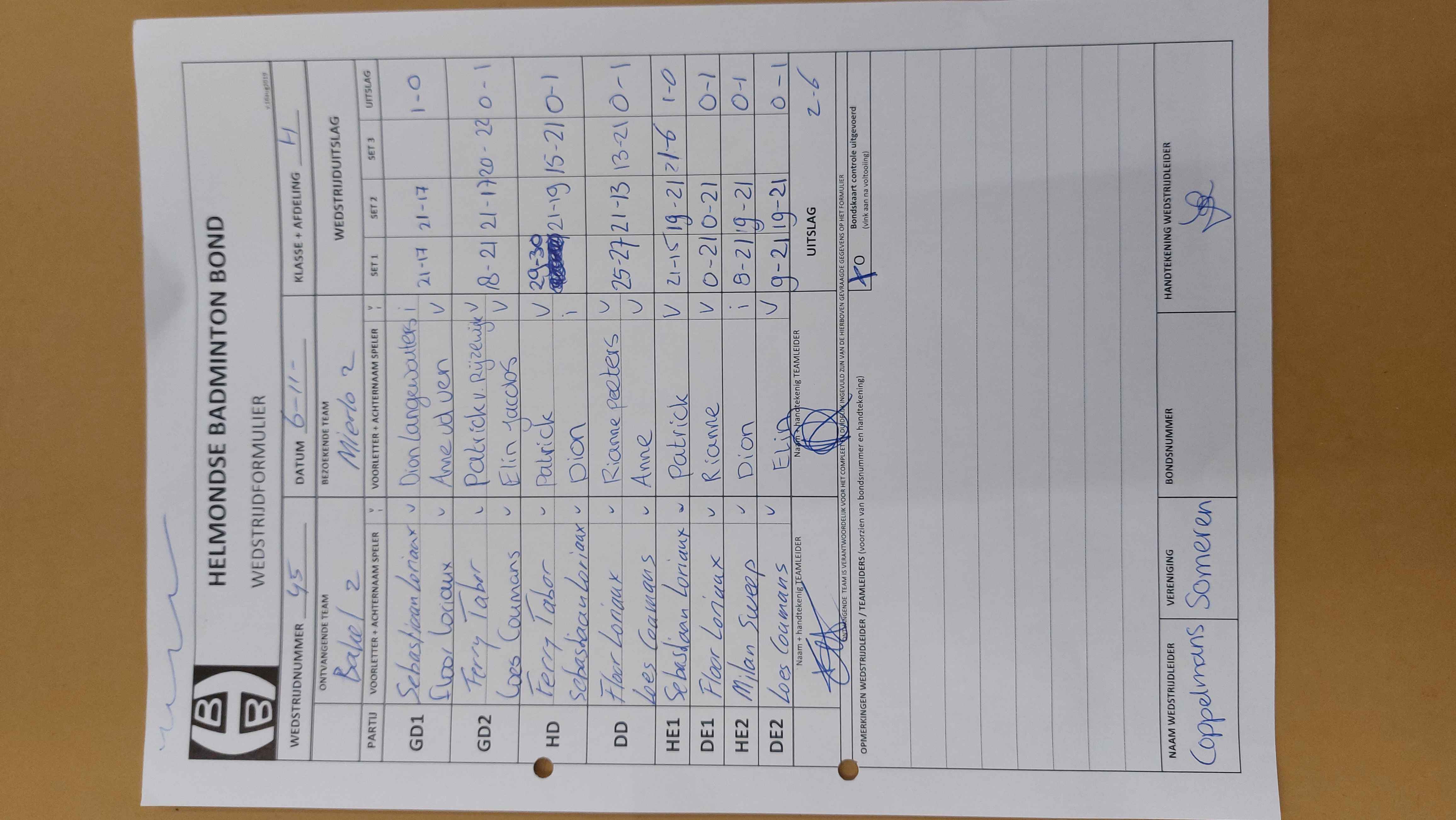 | 1045 | do 05-03-2026 | Mierlo 2 | - | Bakel 2 | 1 | - | |||