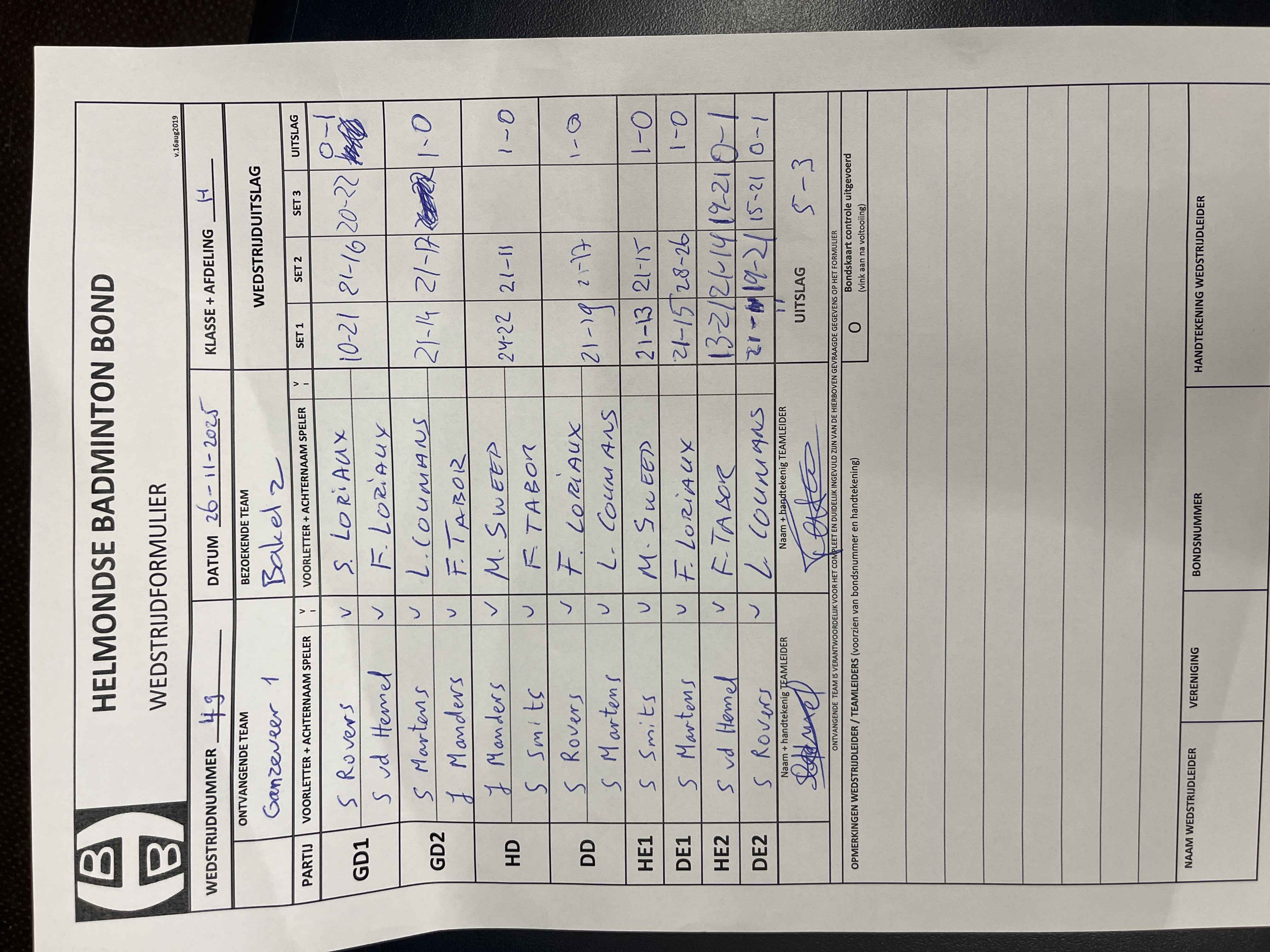 | 49 | wo 26-11-2025 | Ganzeveer 1 | - | Bakel 2 | 2 | 5 - 3 | |||