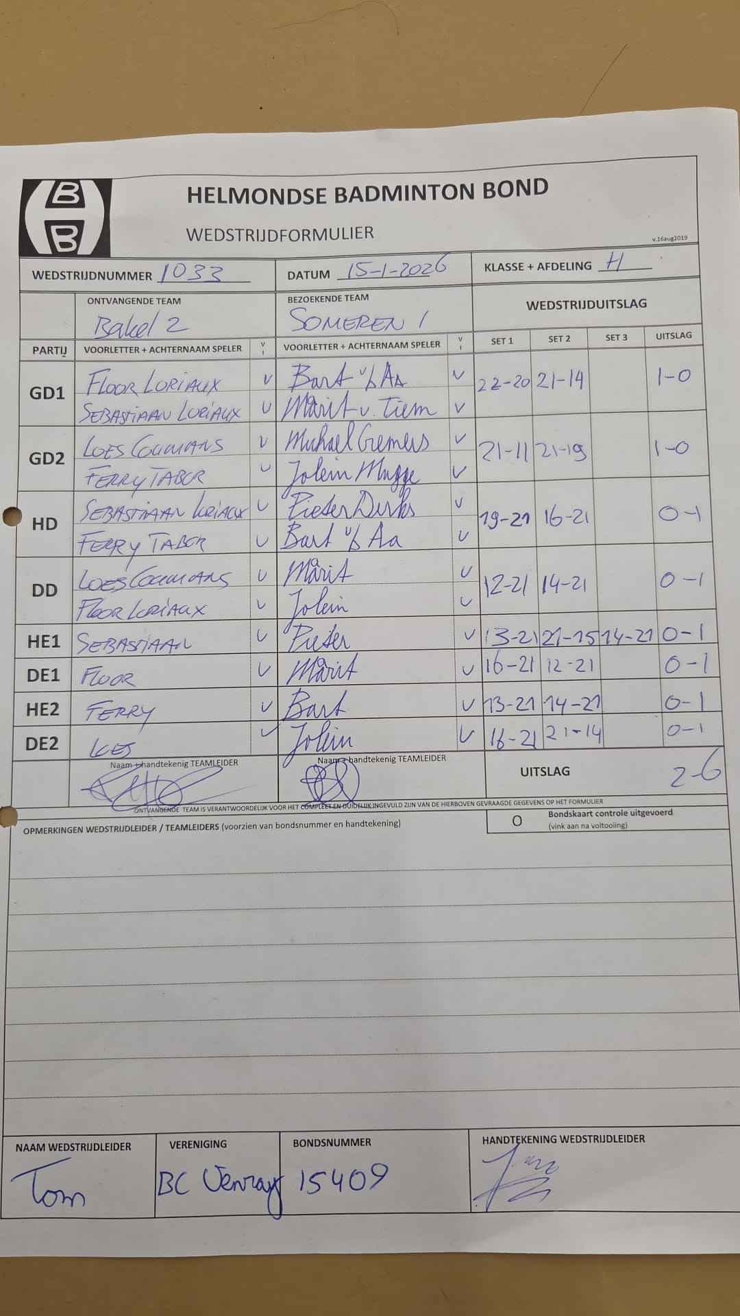 | 1033 | do 15-01-2026 | Bakel 2 | - | Someren 1 | 14 | 2 - 6 | |||