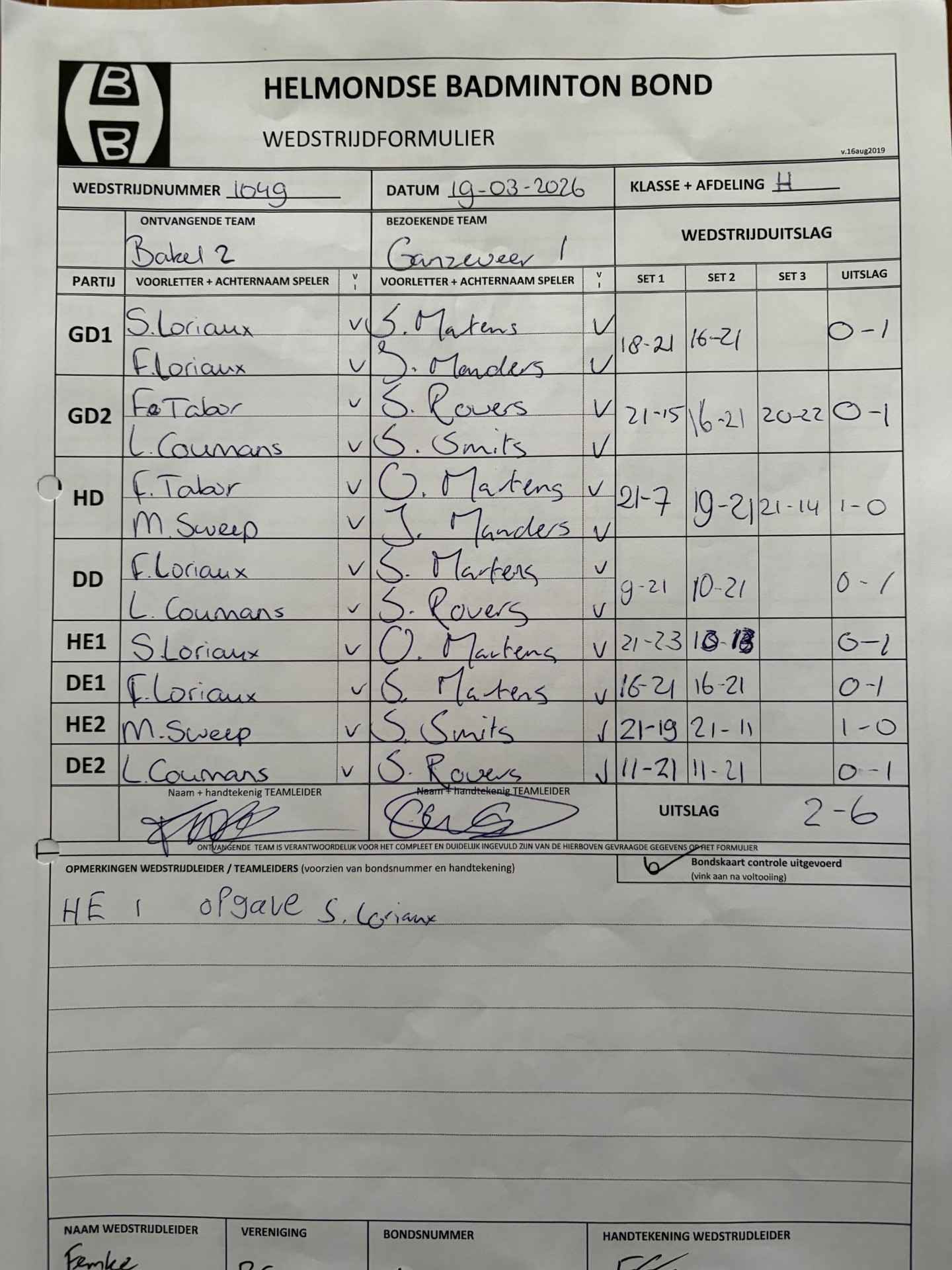 | 1049 | do 19-03-2026 | Bakel 2 | - | Ganzeveer 1 | 11 | 2 - 6 | |||