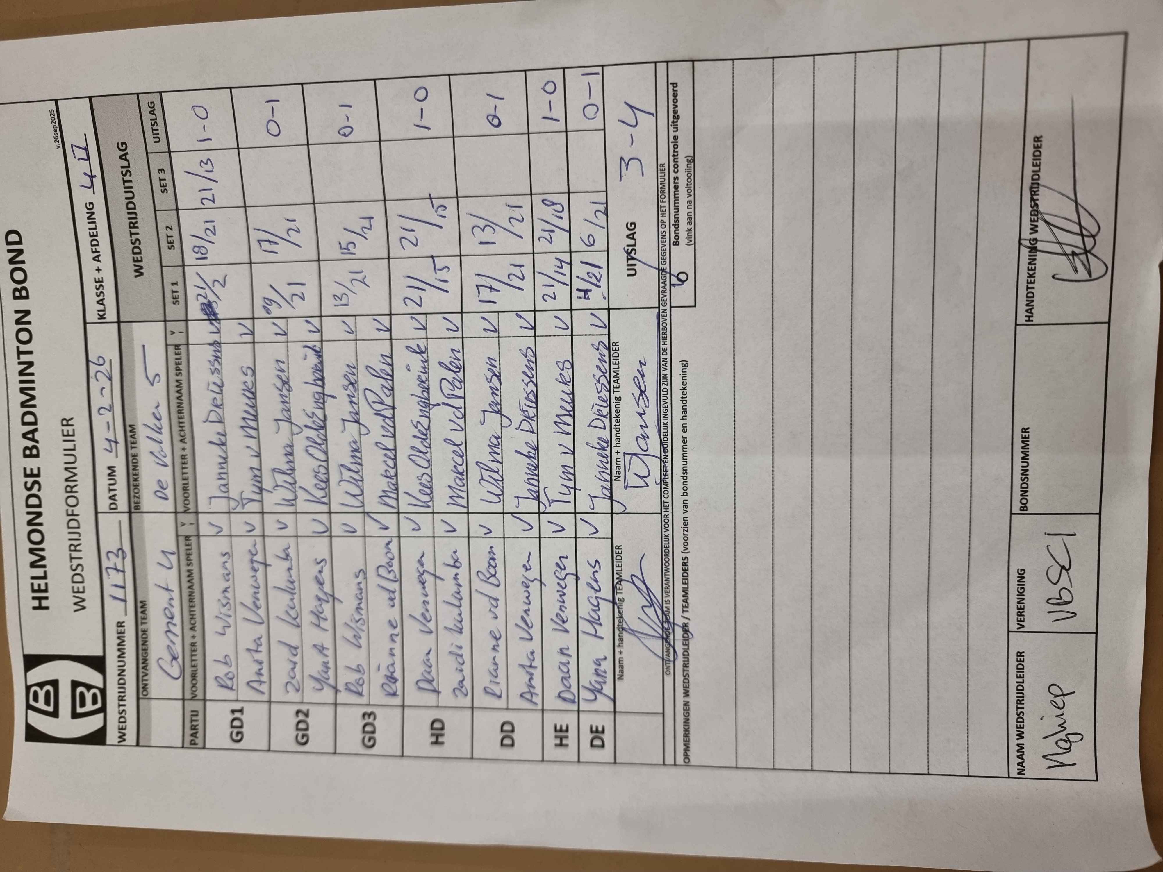 | 1173 | wo 04-02-2026 | Gemert 4 | - | De Valken 5 | 15 | 3 - 4 | |||