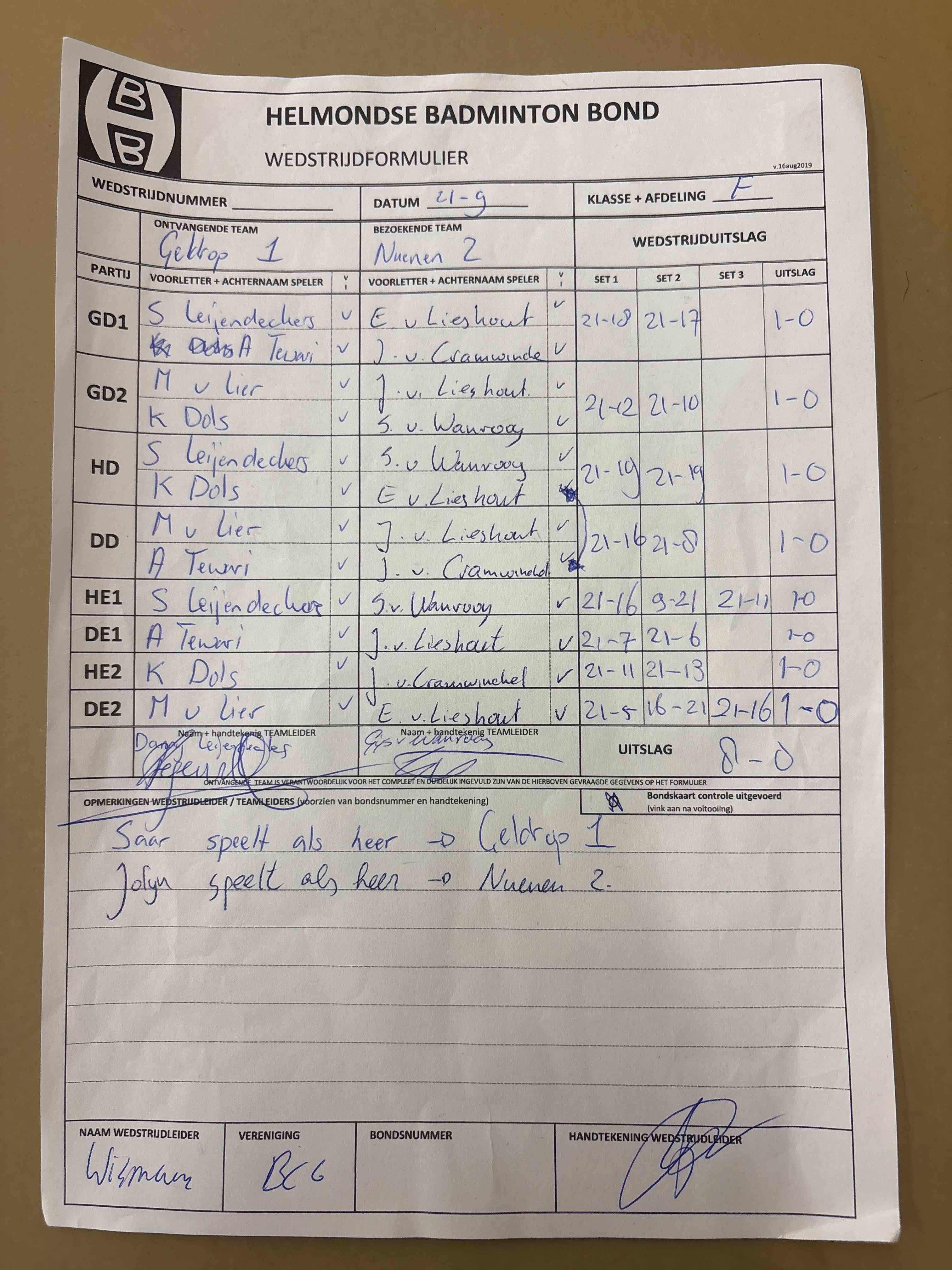 | 09:30 | zo 21-09-2025 | Geldrop 1 | - | Nuenen 2 | 4 | 8 - 0 | ||