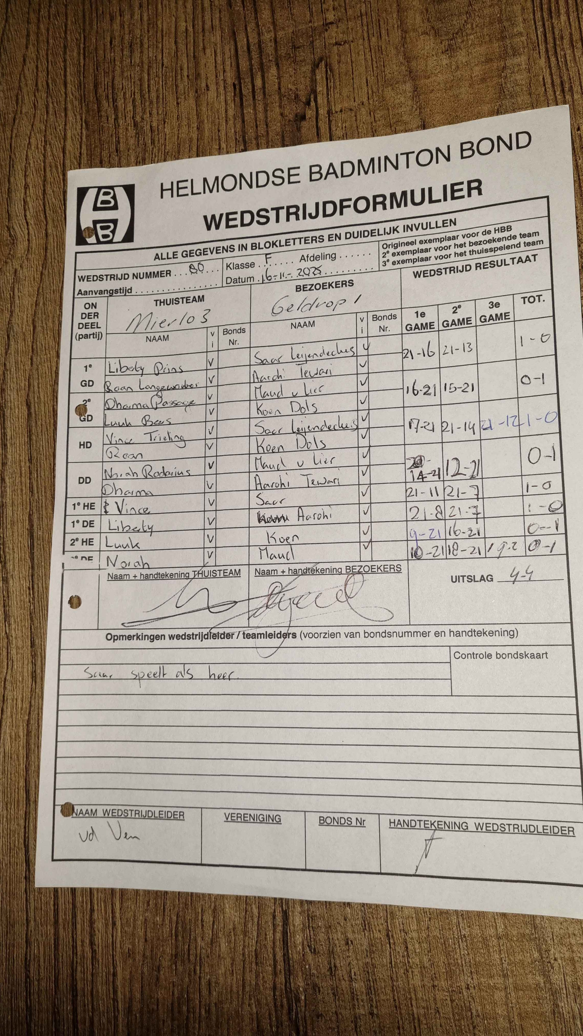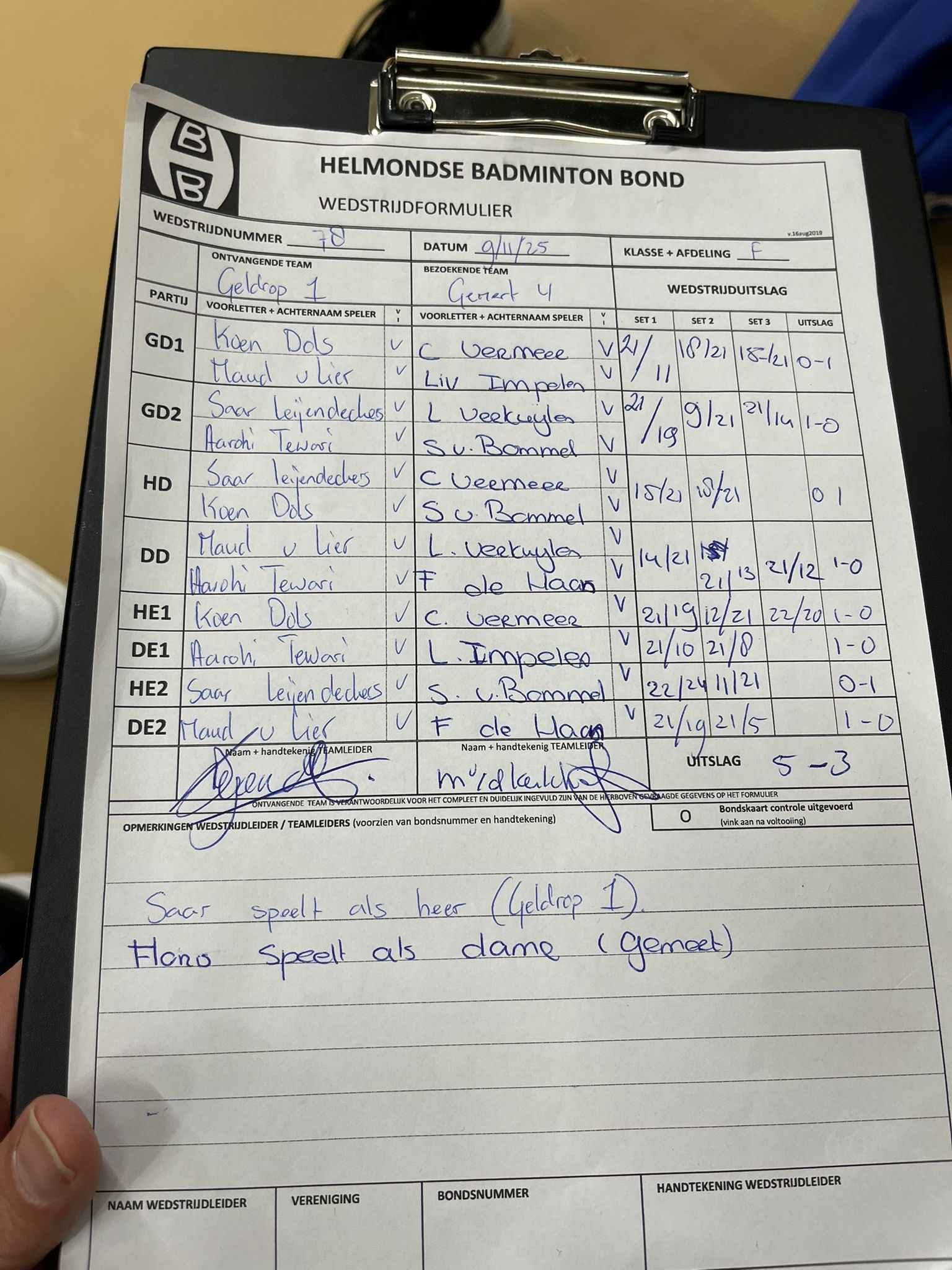 | 12:30 | zo 09-11-2025 | Geldrop 1 | - | Gemert 4 | 12 | 5 - 3 | ||