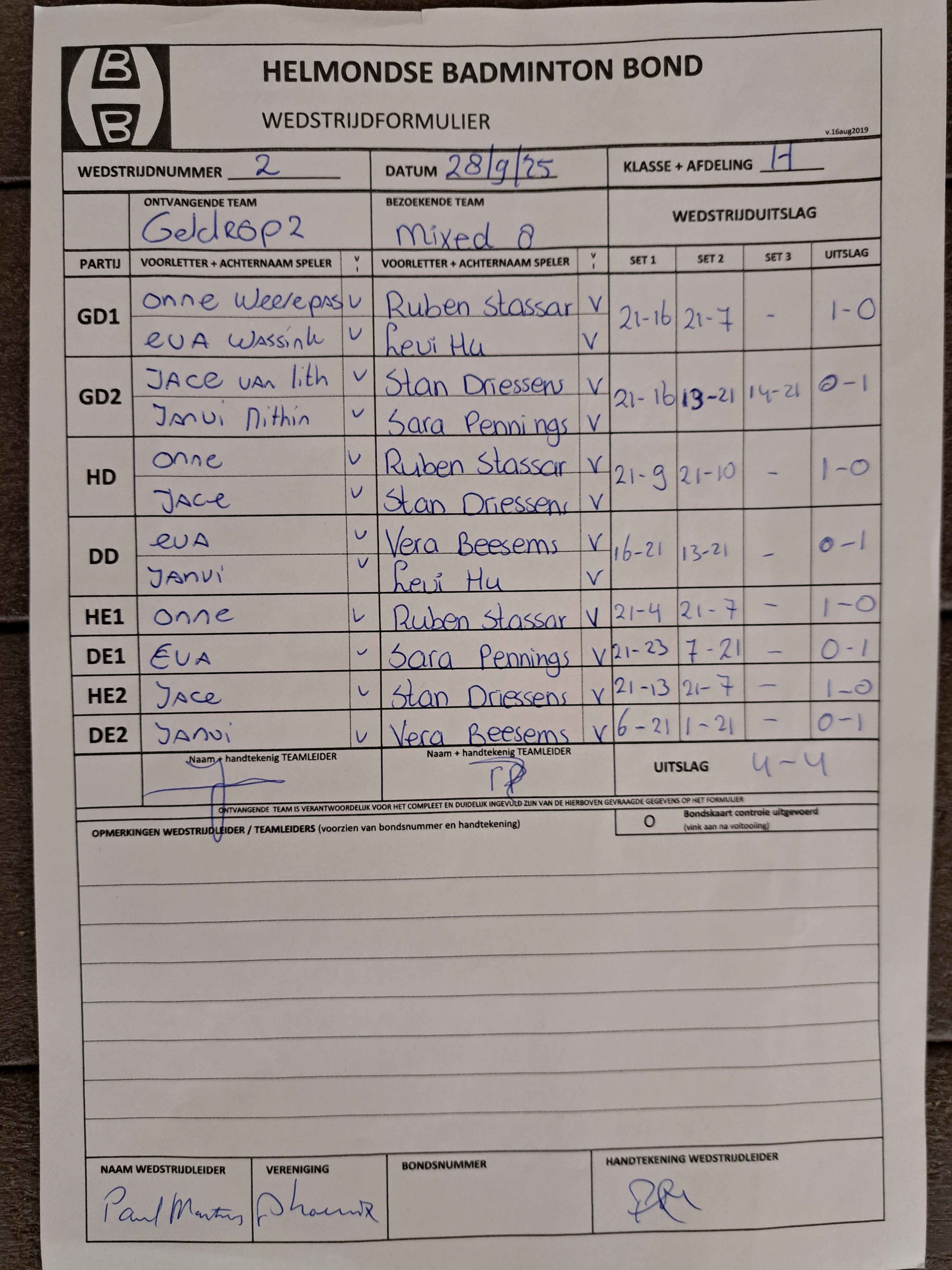 | 12:30 | zo 28-09-2025 | Geldrop 2 | - | Mixed 8 | 12 | 4 - 4 | ||