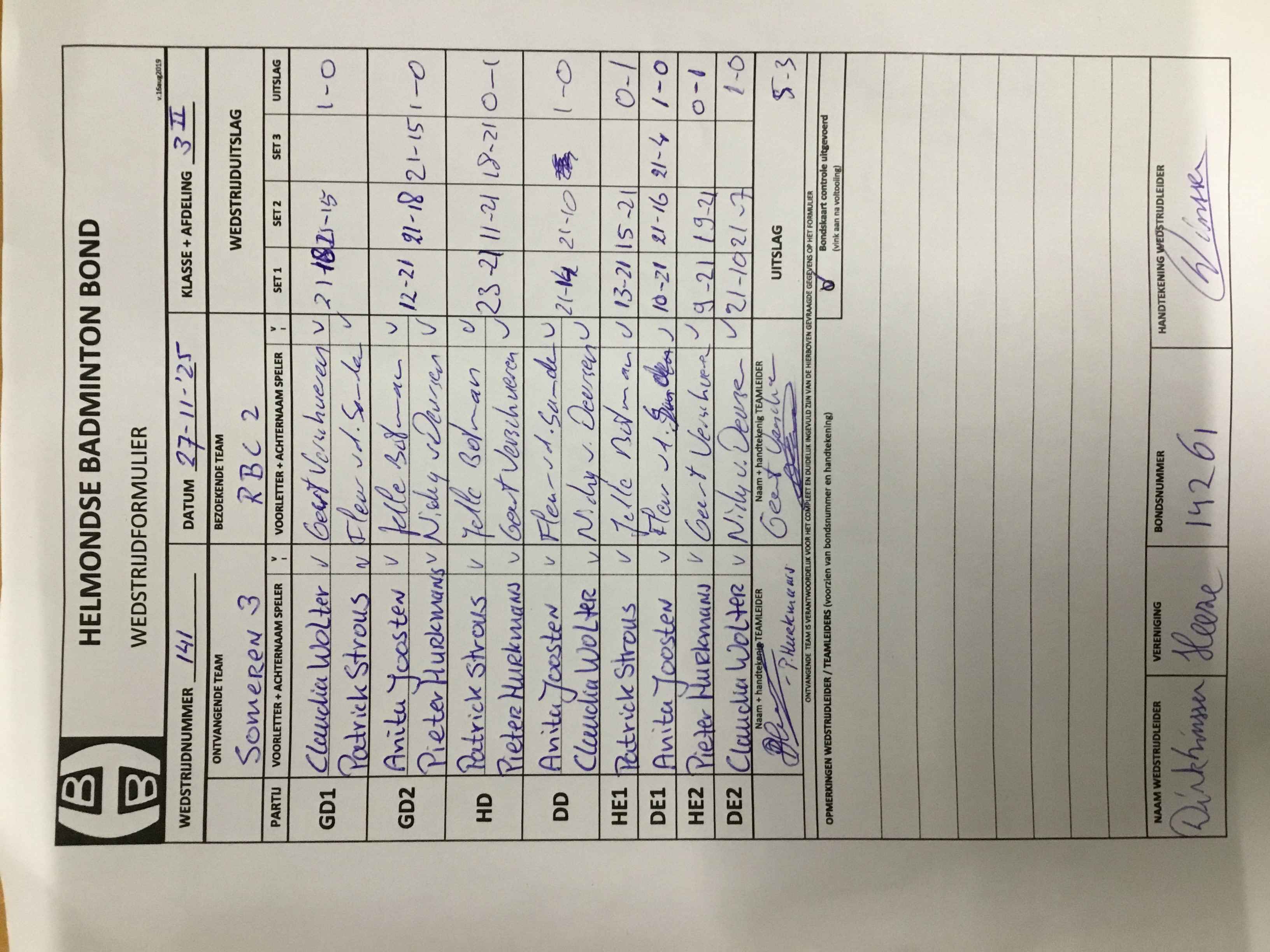 | 141 | do 27-11-2025 | Someren 3 | - | RBC 2 | 15 | 5 - 3 | |||