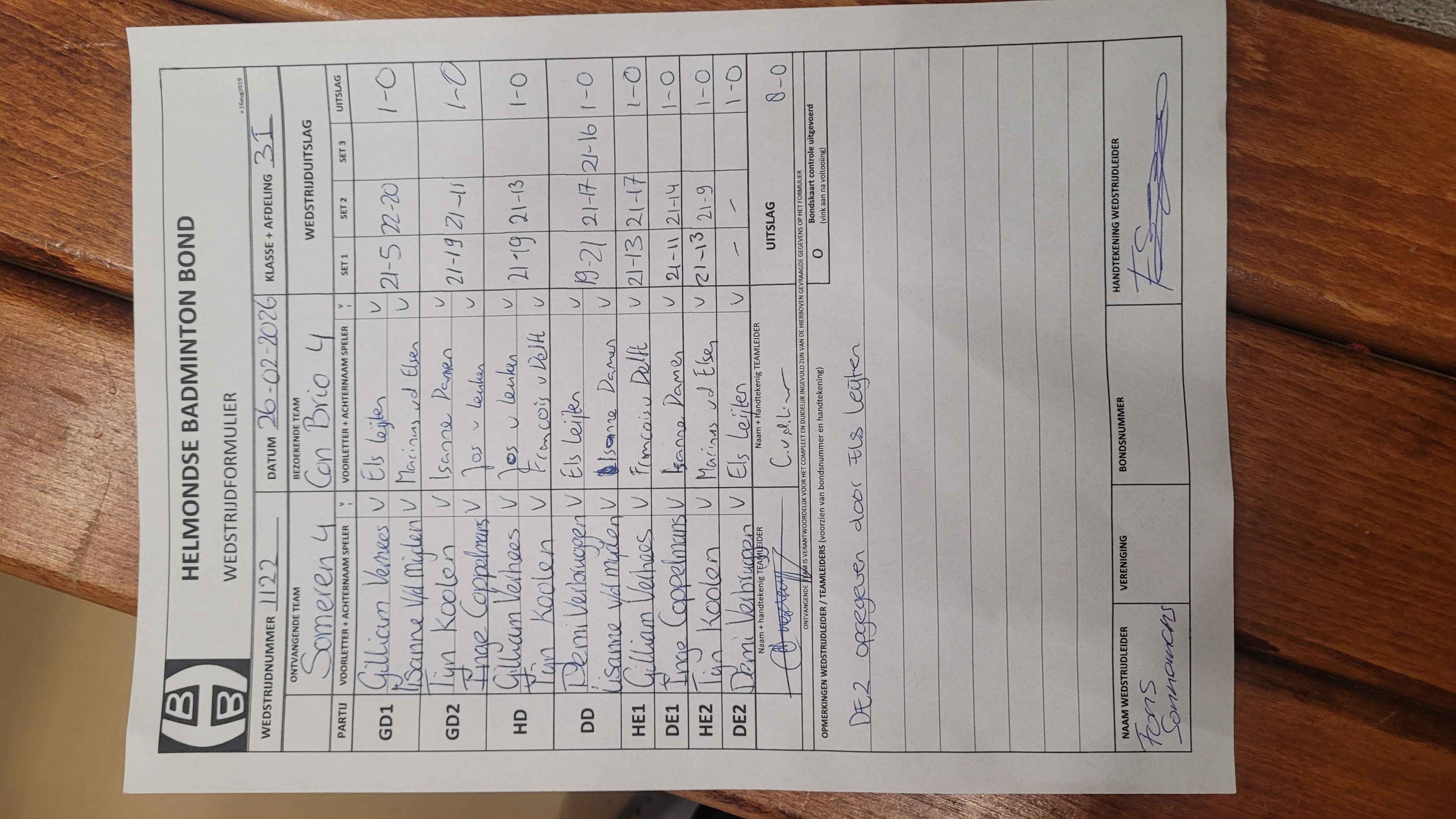 | 1122 | do 26-02-2026 | Someren 4 | - | Con Brio 4 | 15 | 8 - 0 | |||