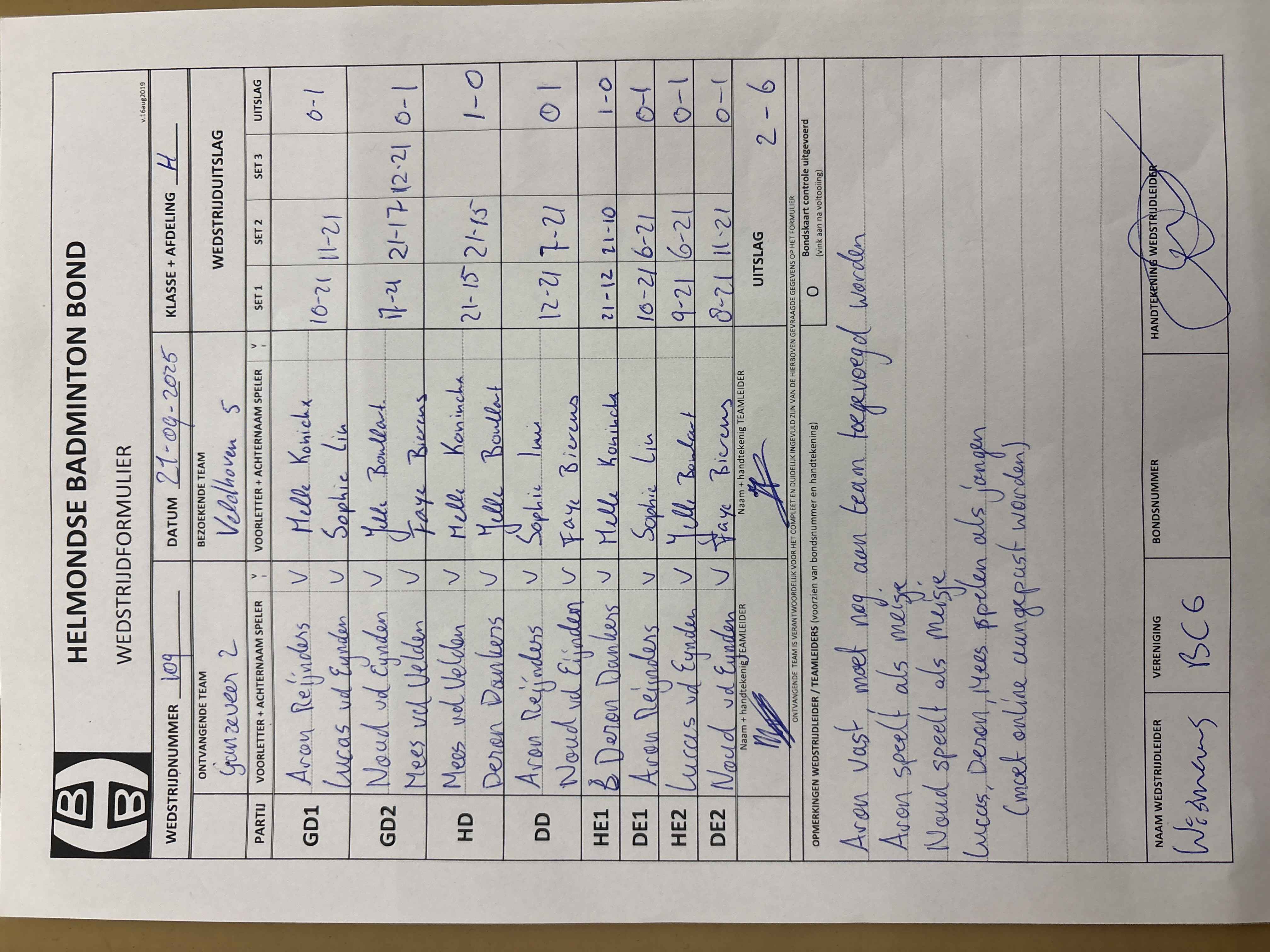 | 09:30 | zo 21-09-2025 | Ganzeveer 2 | - | Veldhoven 5 | 12 | 2 - 6 | ||