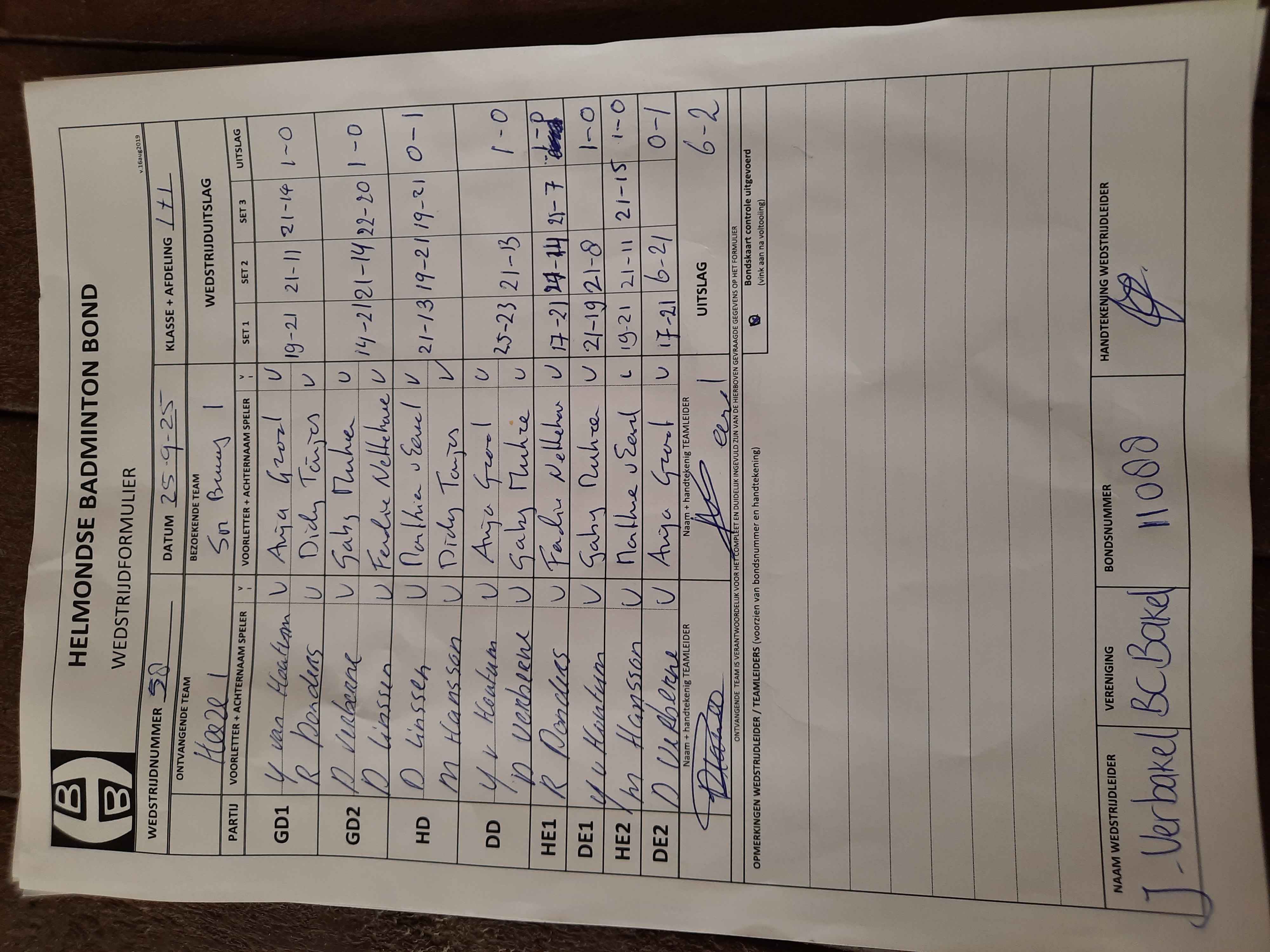 62 | wo 01-10-2025 | Heeze 1 | - | Mierlo 3 | 5 | 1 - 7 | |||