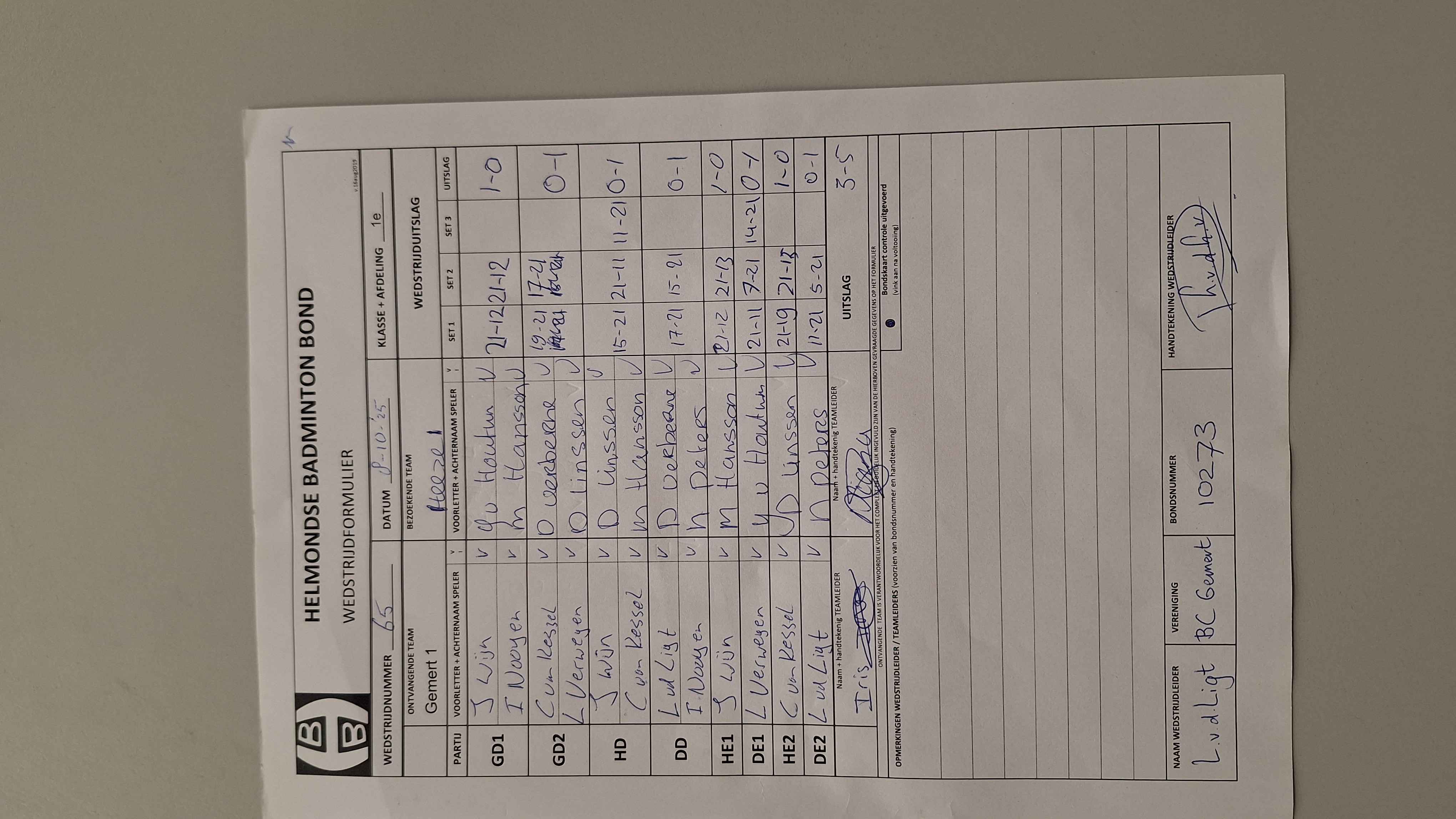 65 | wo 08-10-2025 | Gemert 1 | - | Heeze 1 | 15 | 3 - 5 | |||