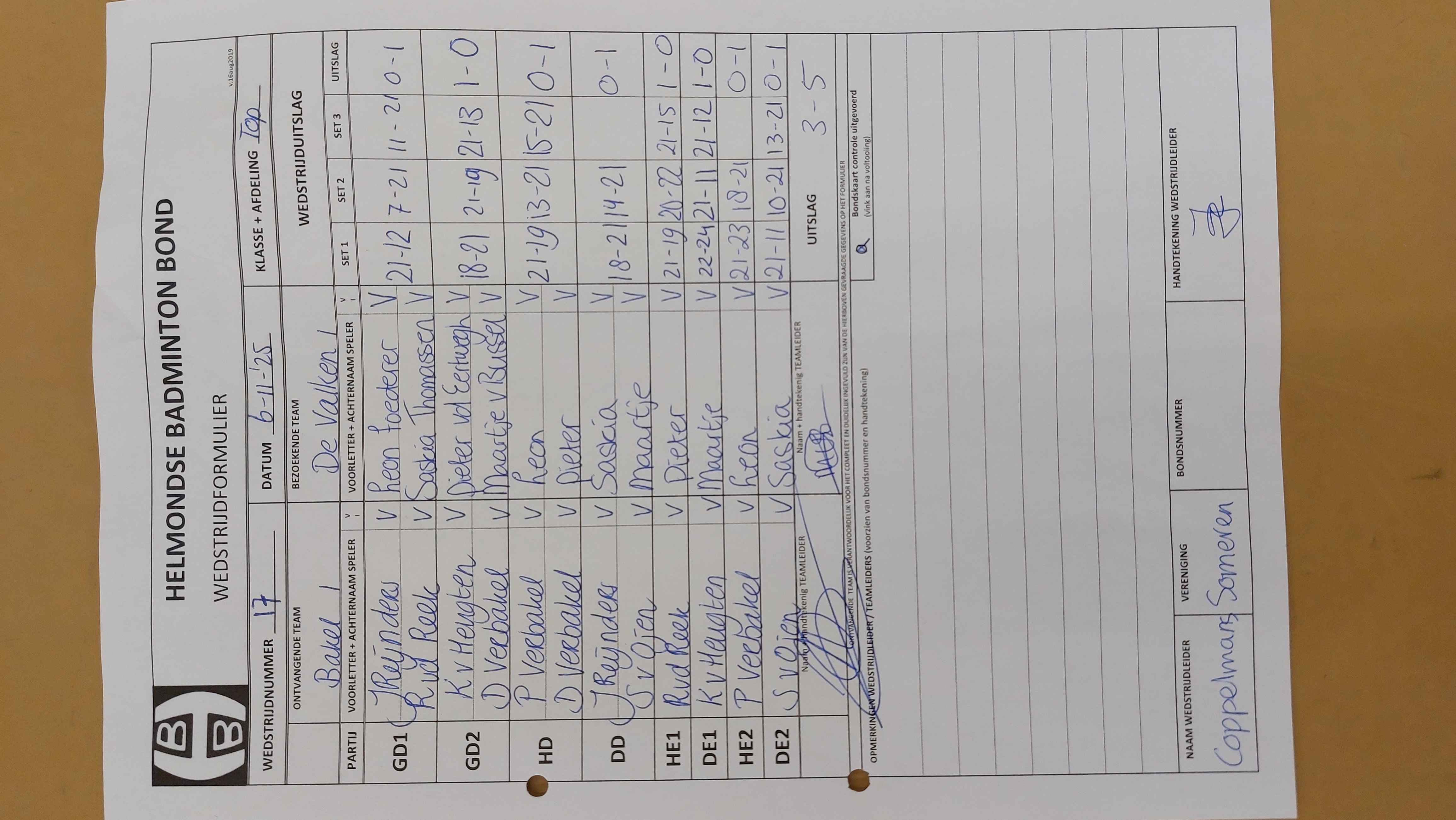 | 17 | do 06-11-2025 | Bakel 1 | - | De Valken 1 | 1 | 3 - 5 | |||