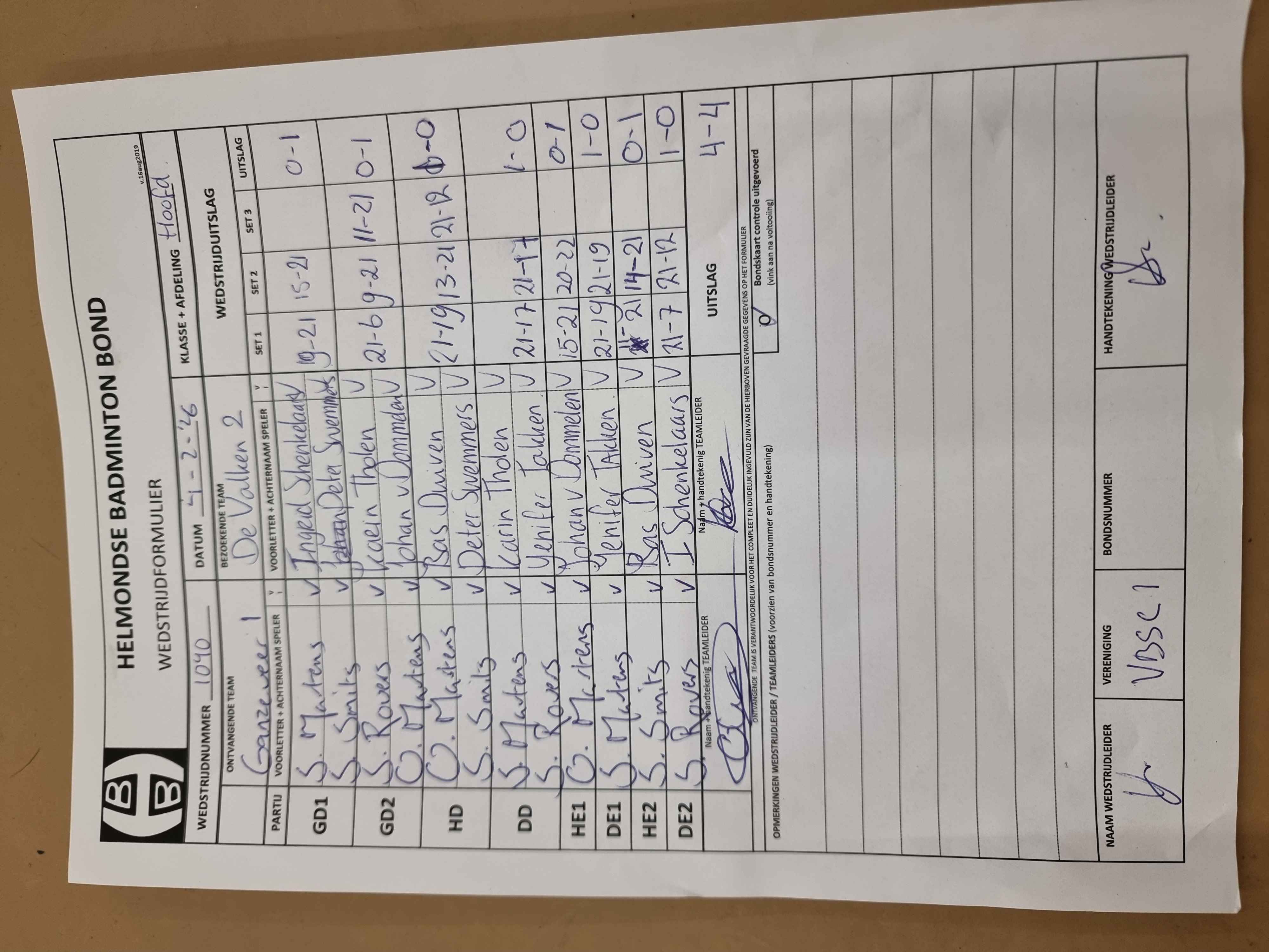 | 1040 | wo 04-02-2026 | Ganzeveer 1 | - | De Valken 2 | 5 | 4 - 4 | |||