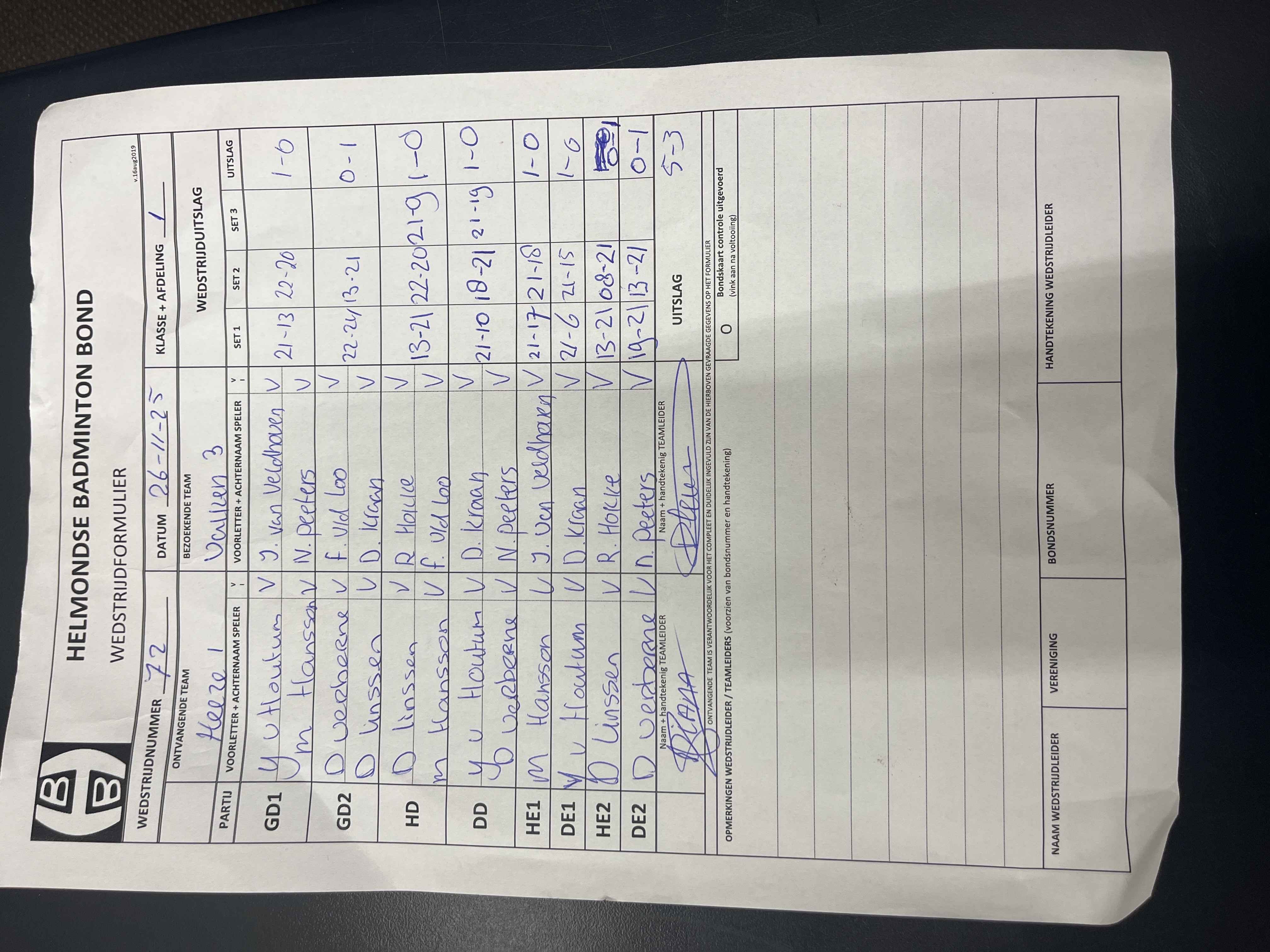 | 72 | wo 26-11-2025 | Heeze 1 | - | De Valken 3 | 4 | 5 - 3 | |||