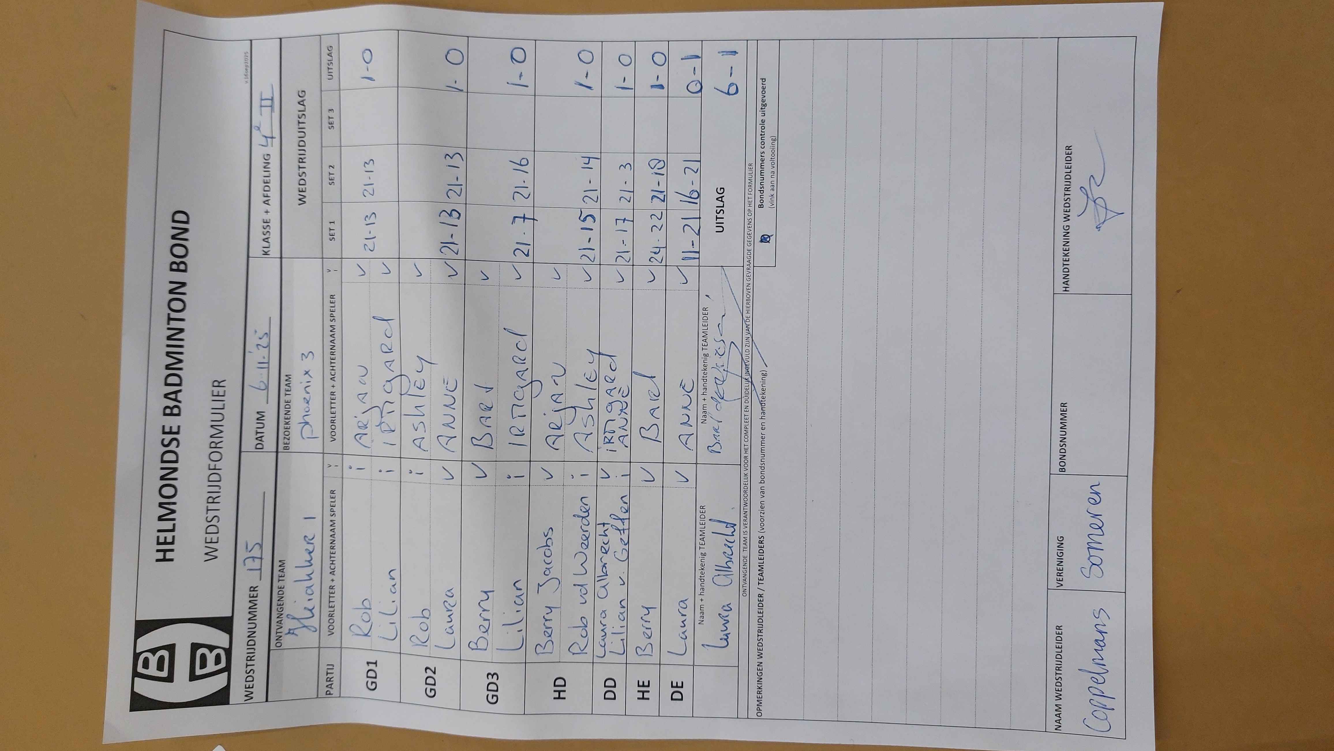| 1175 | wo 25-02-2026 | Phoenix 3 | - | Heiakker 1 | 2 | - | |||