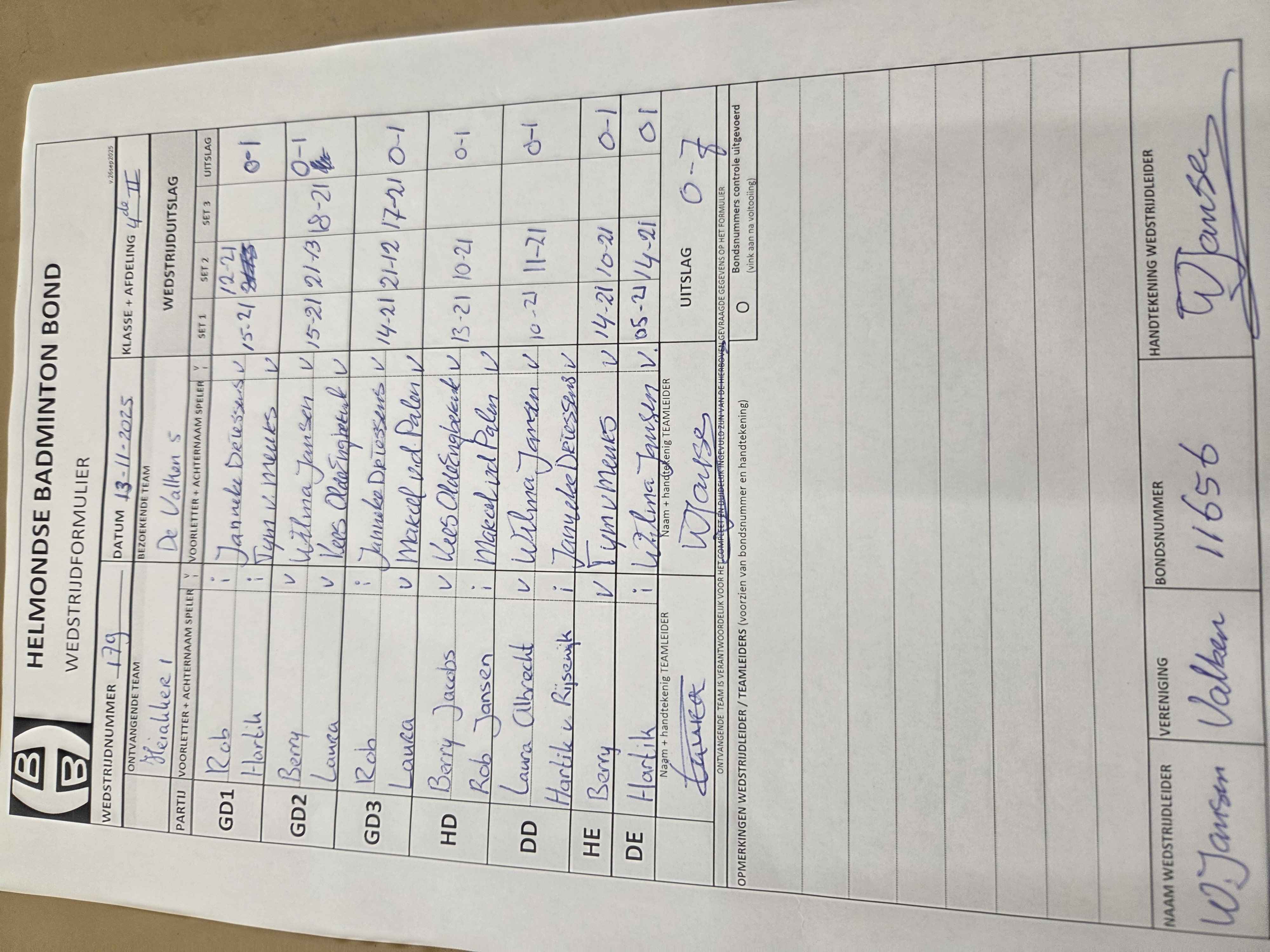 | 179 | do 13-11-2025 | Heiakker 1 | - | De Valken 5 | 12 | 0 - 7 | |||