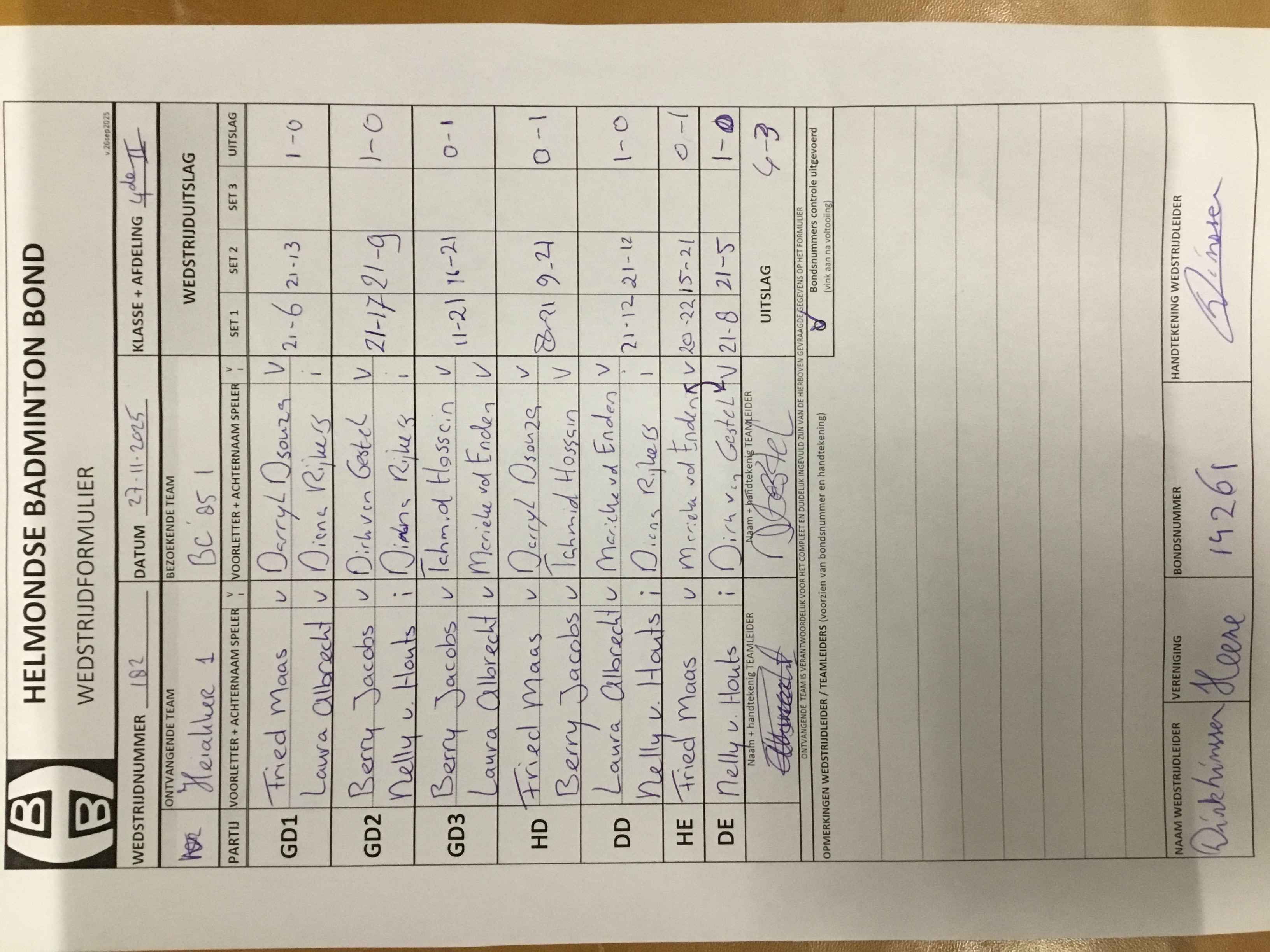 | 182 | do 27-11-2025 | Heiakker 1 | - | BC '85 1 | 2 | 4 - 3 | |||