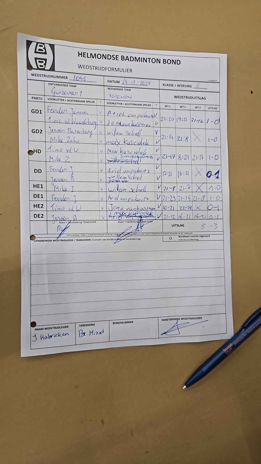 | 09:30 | zo 05-10-2025 | Nuenen 1 | - | Mixed 5 | 5 | 5 - 3 | ||